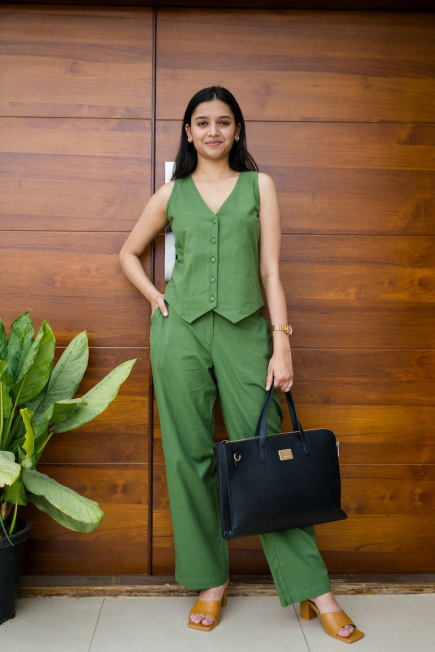 This multifaceted coord set is another variant of your favorite - Suit Up! - a powerhouse you don't want to miss. We made it in a breathable fabric so you don't put it back in your wardrobe for just a fewimportantdays. Slay the look with the Green Tea vest by pairing it with these pants or our Chic Charcoal Skirt or a pair of denims and we guarantee each look to exude power! The pants are versatile enough to be worn separately too with basic t-shirts, shirts, blazer, etcetera, etcetera