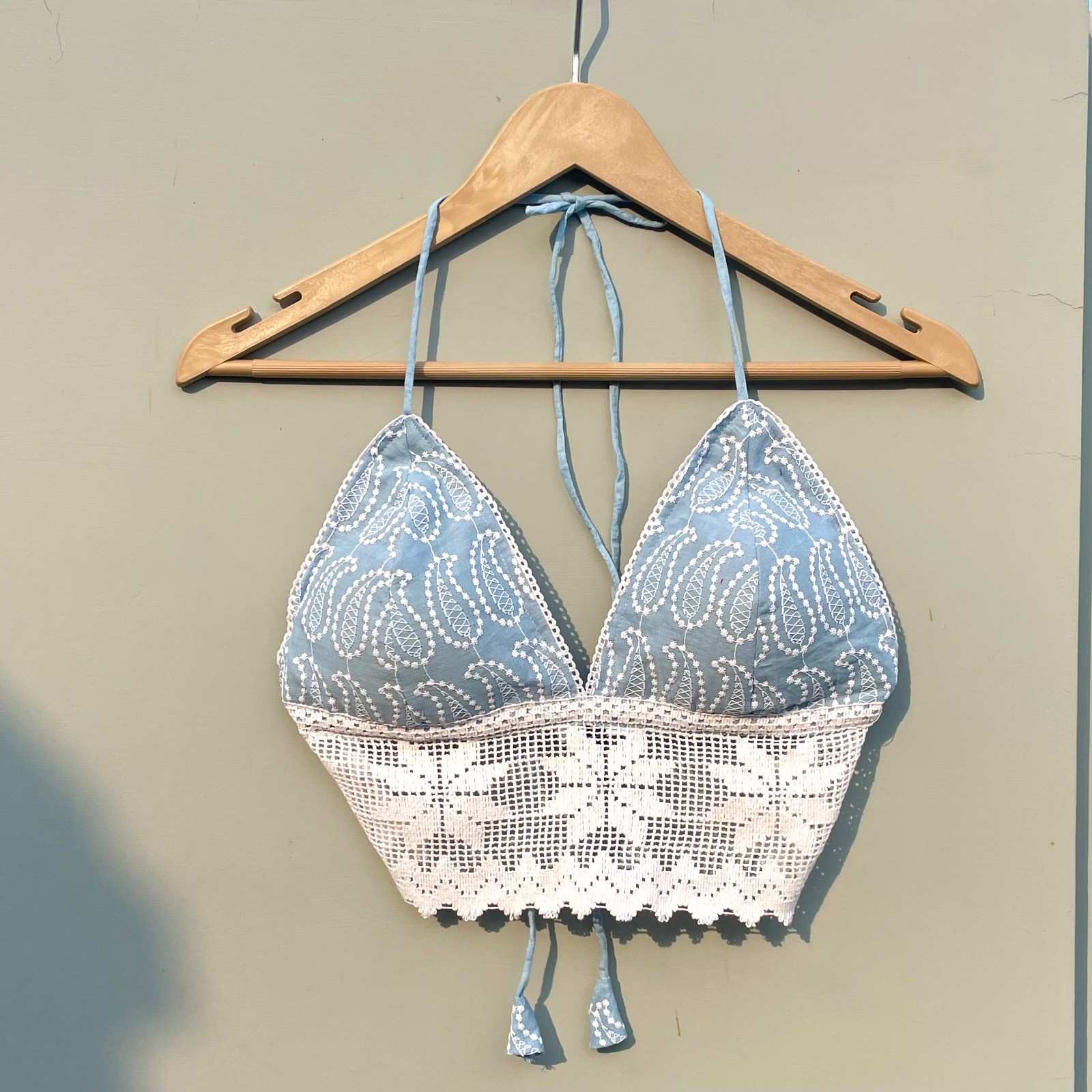 The Grey Chikan Lace Cotton Bralette is a perfect blend of comfort and elegance. Made from soft, breathable cotton, it features delicate Chikan embroidery and lace detailing that adds a touch of sophistication. The bralette style offers both support and style, making it ideal for layering or wearing on its own.
