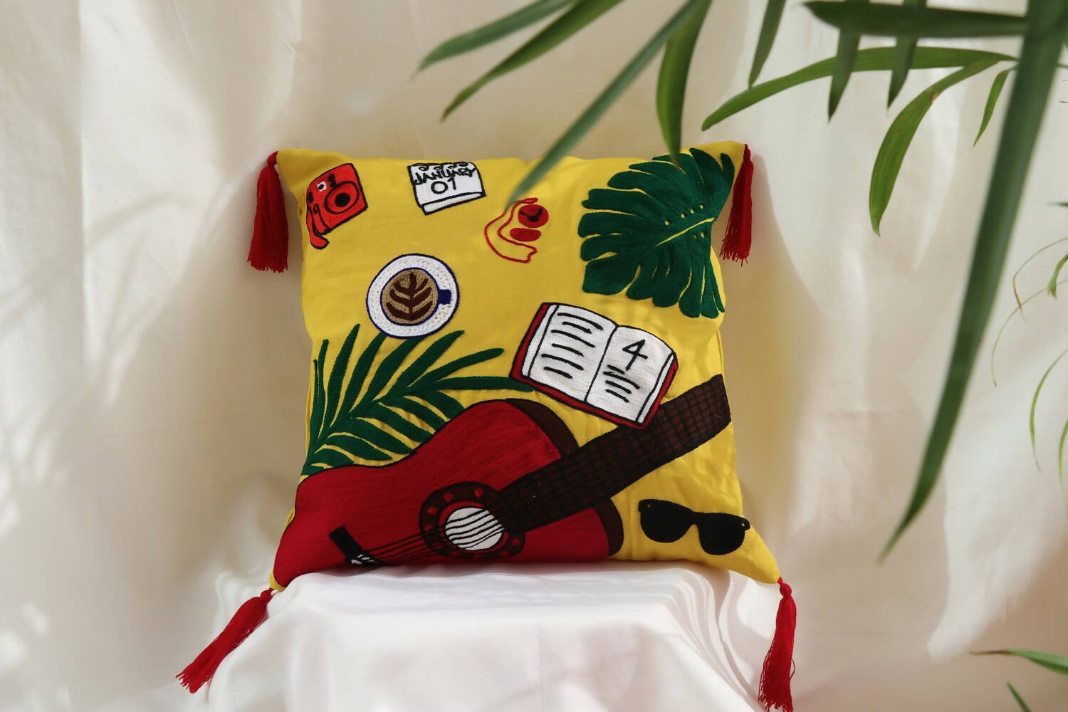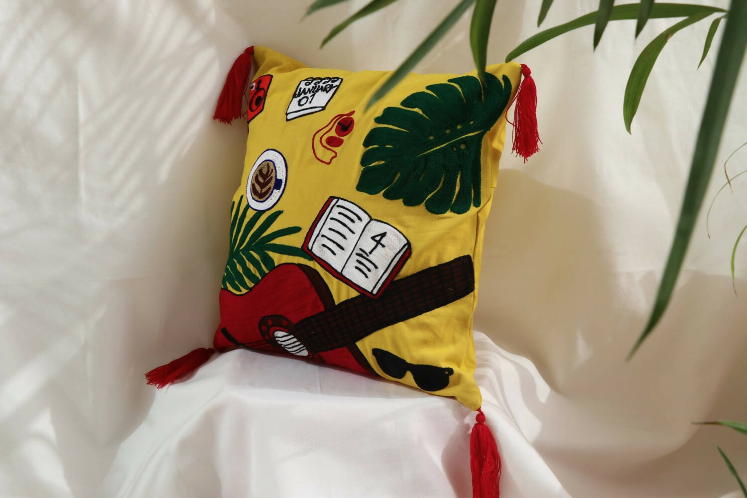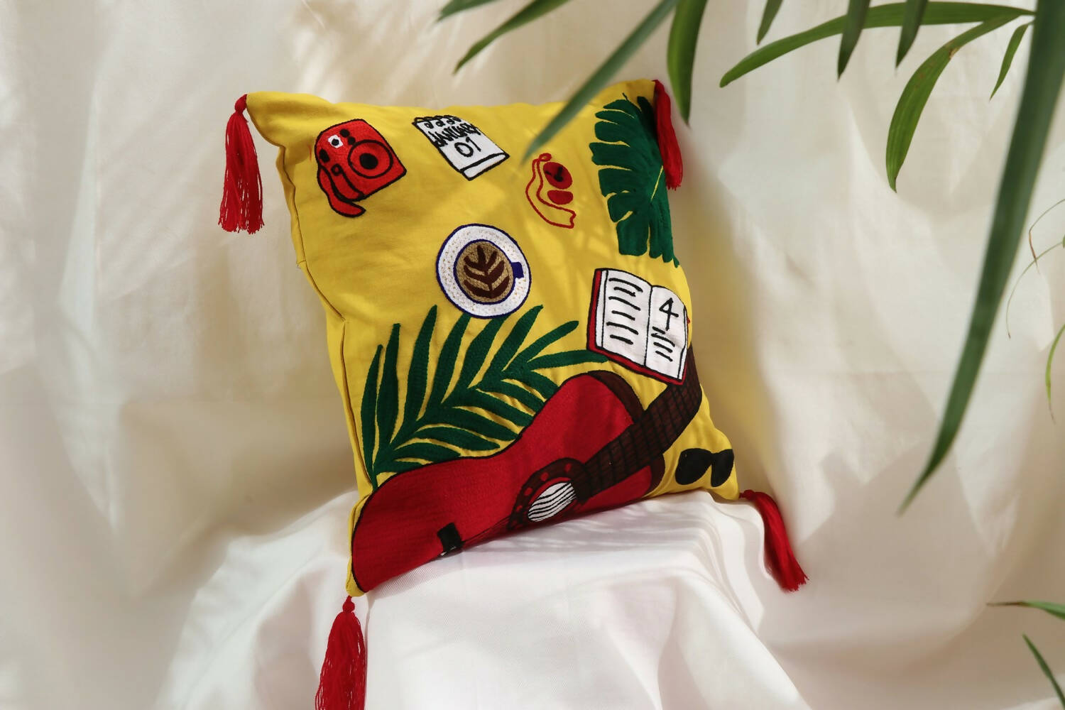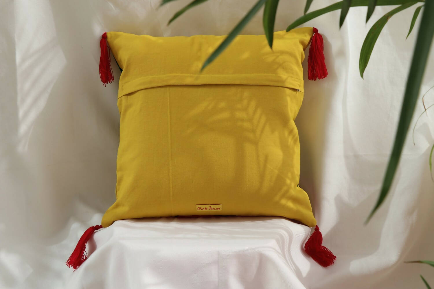 The cushion cover is made with duck cotton fabric, embroidered by local artisans of UP, India.