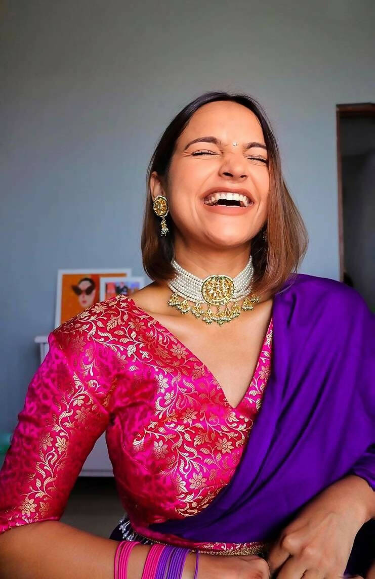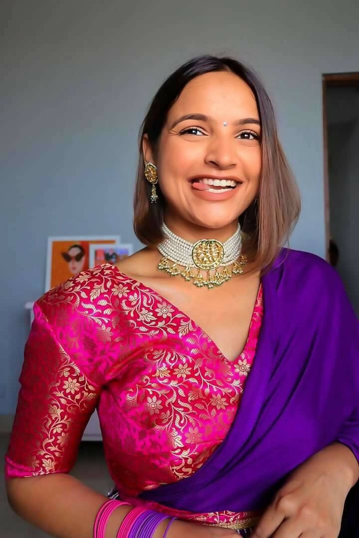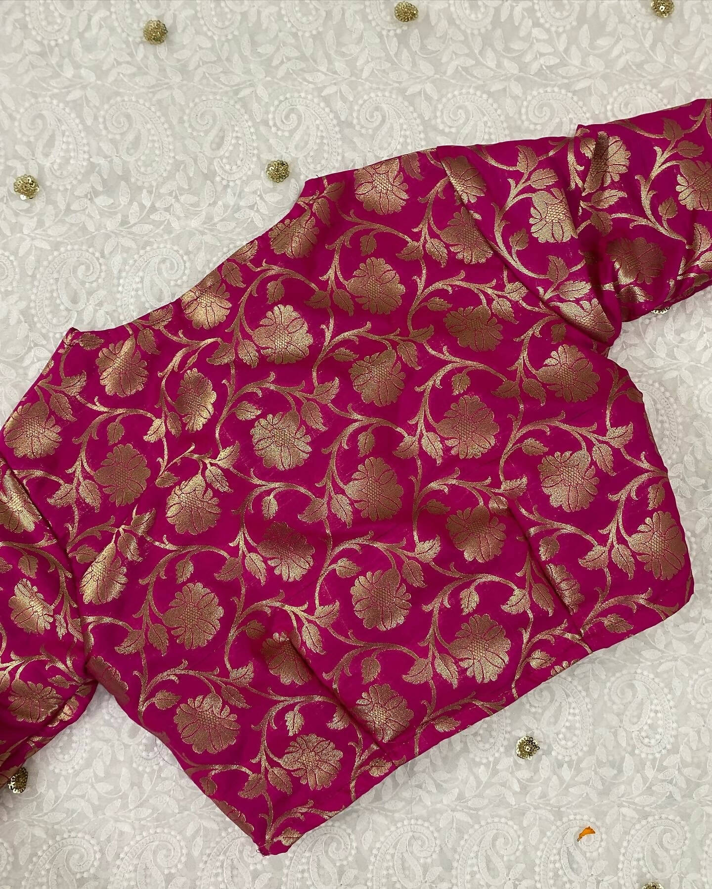 Elegantly designed to complement any saree, this blouse is a timeless fusion of tradition and style.