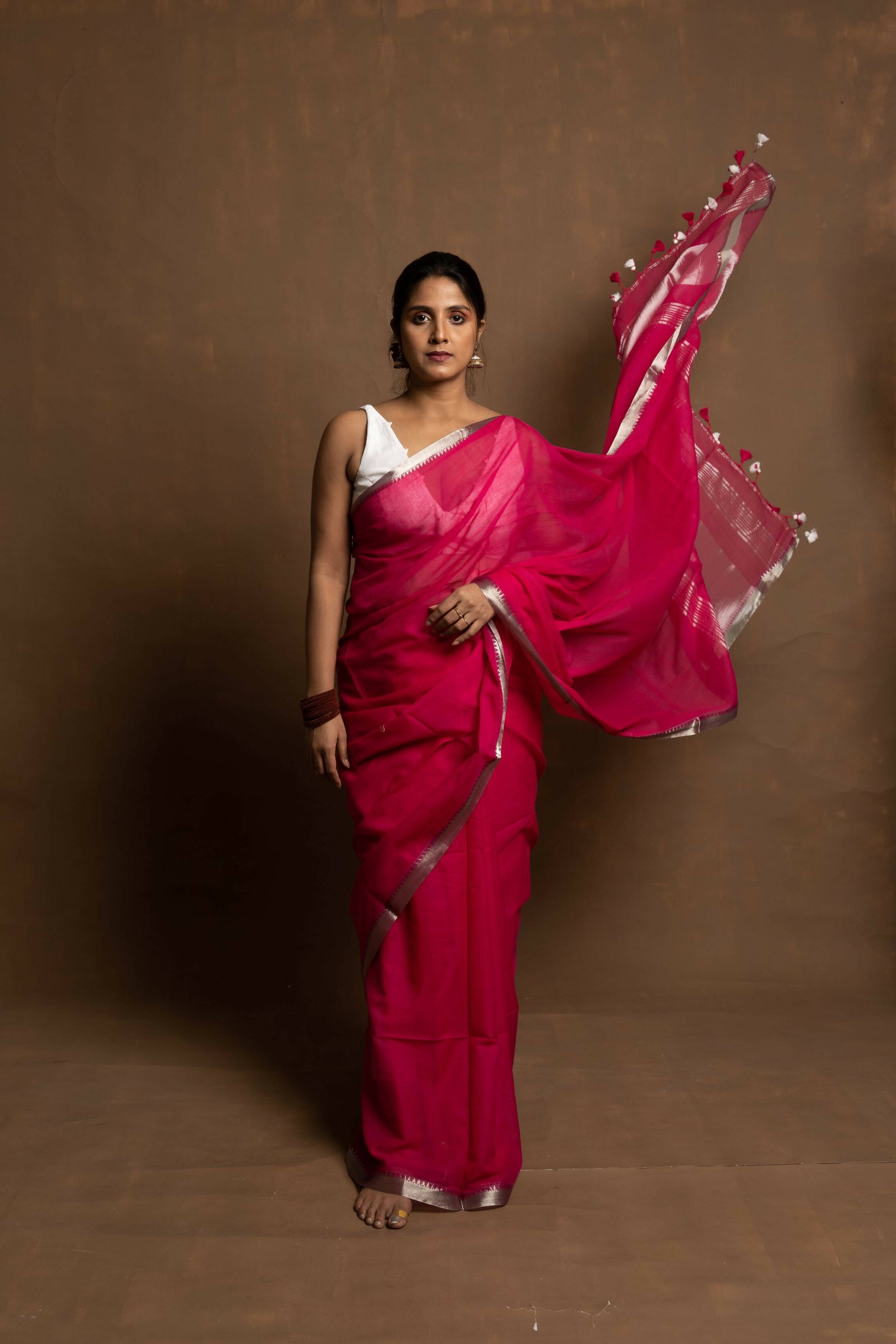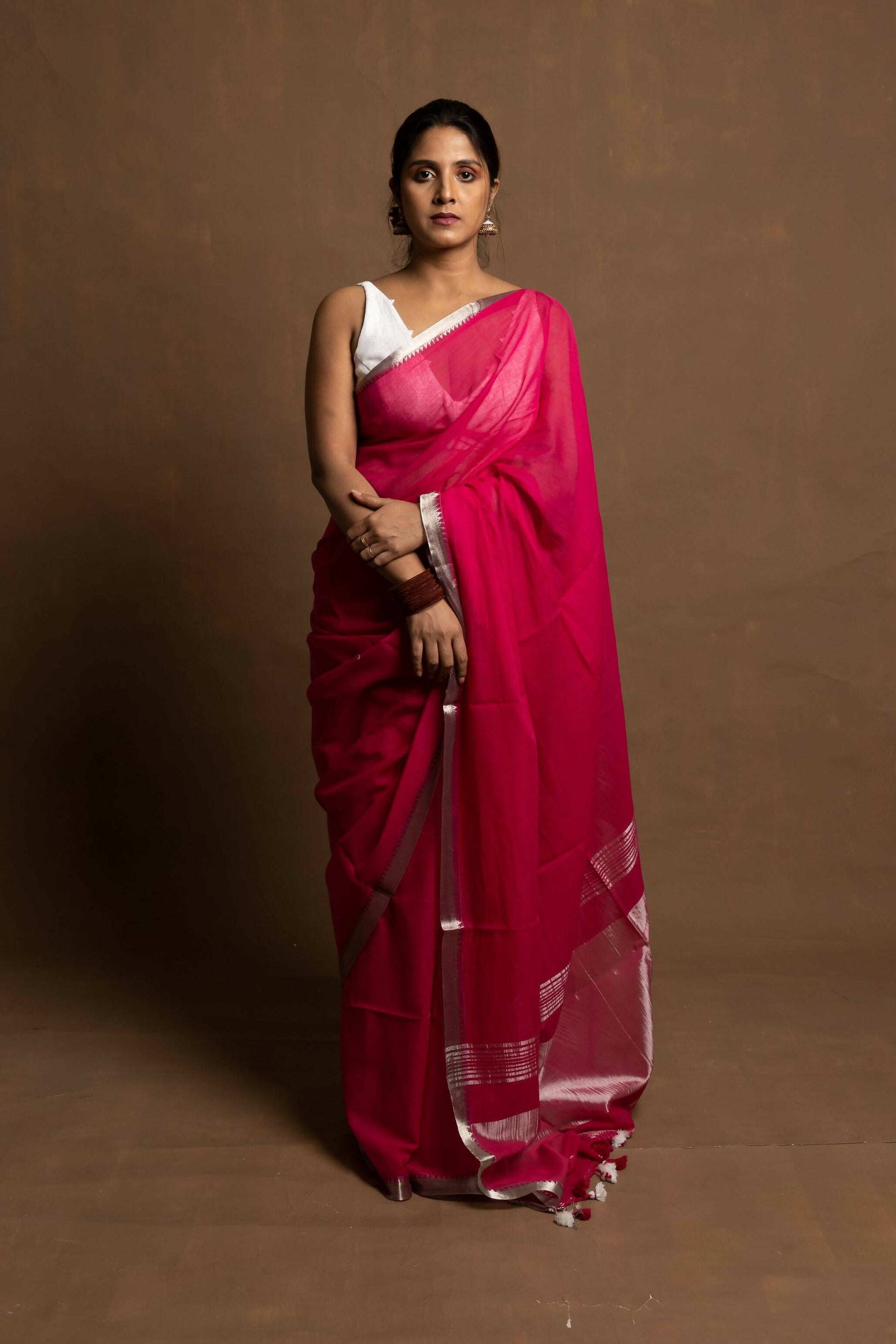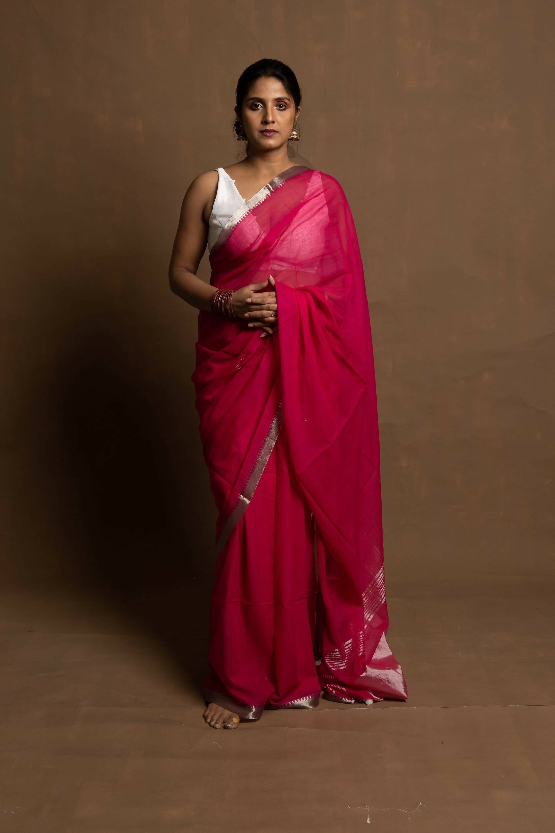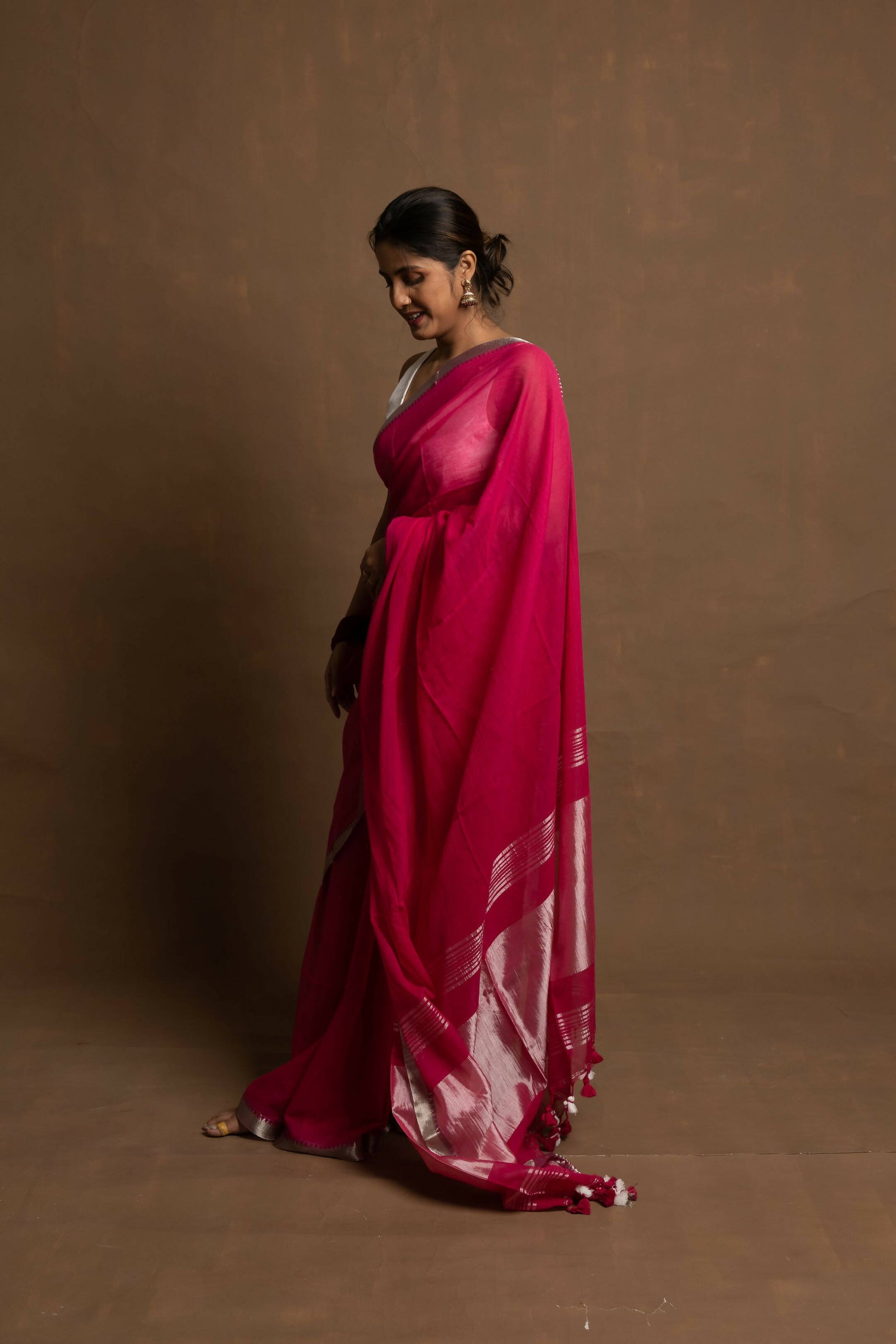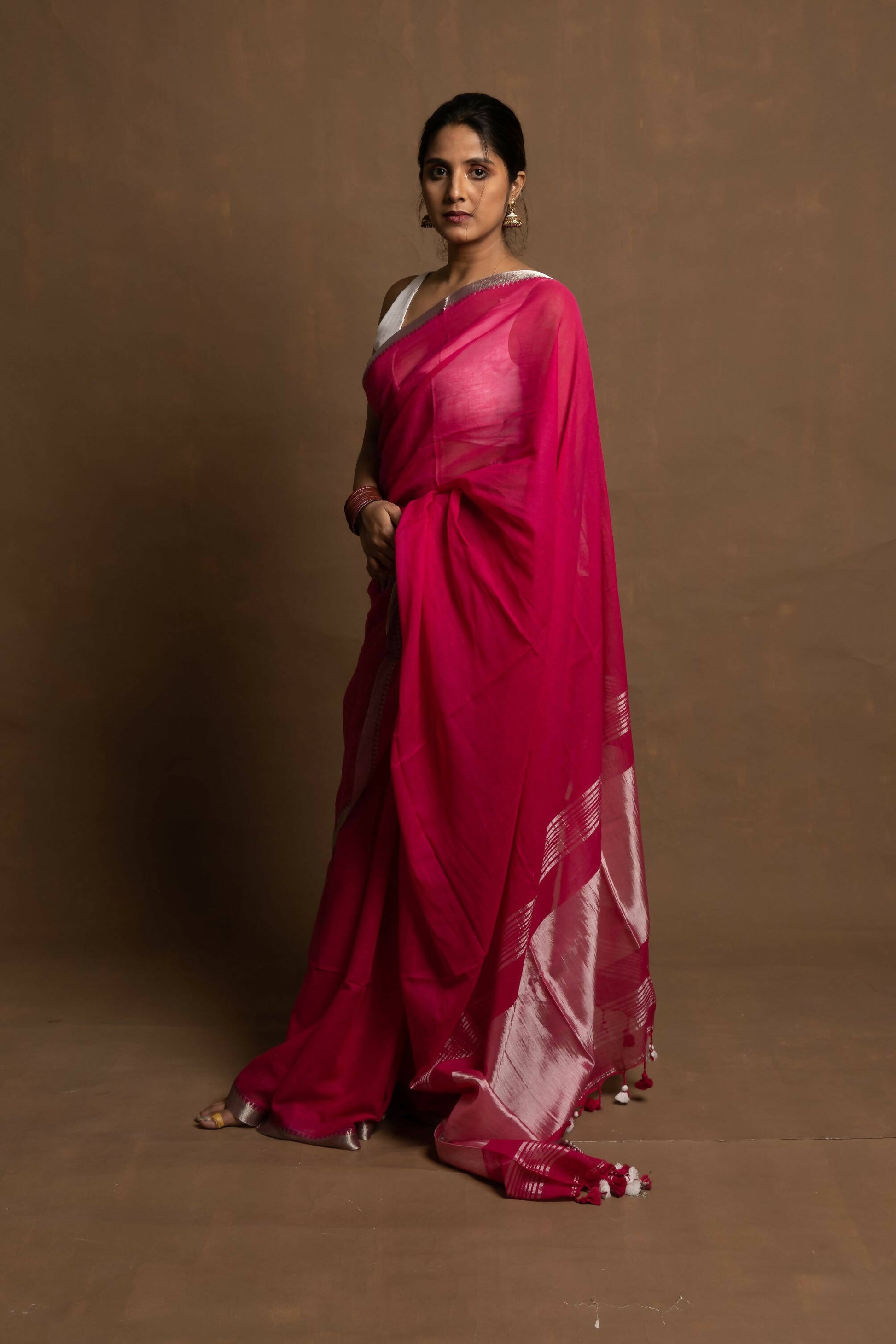 Materials: Mul cotton with silk zari on border and pallu