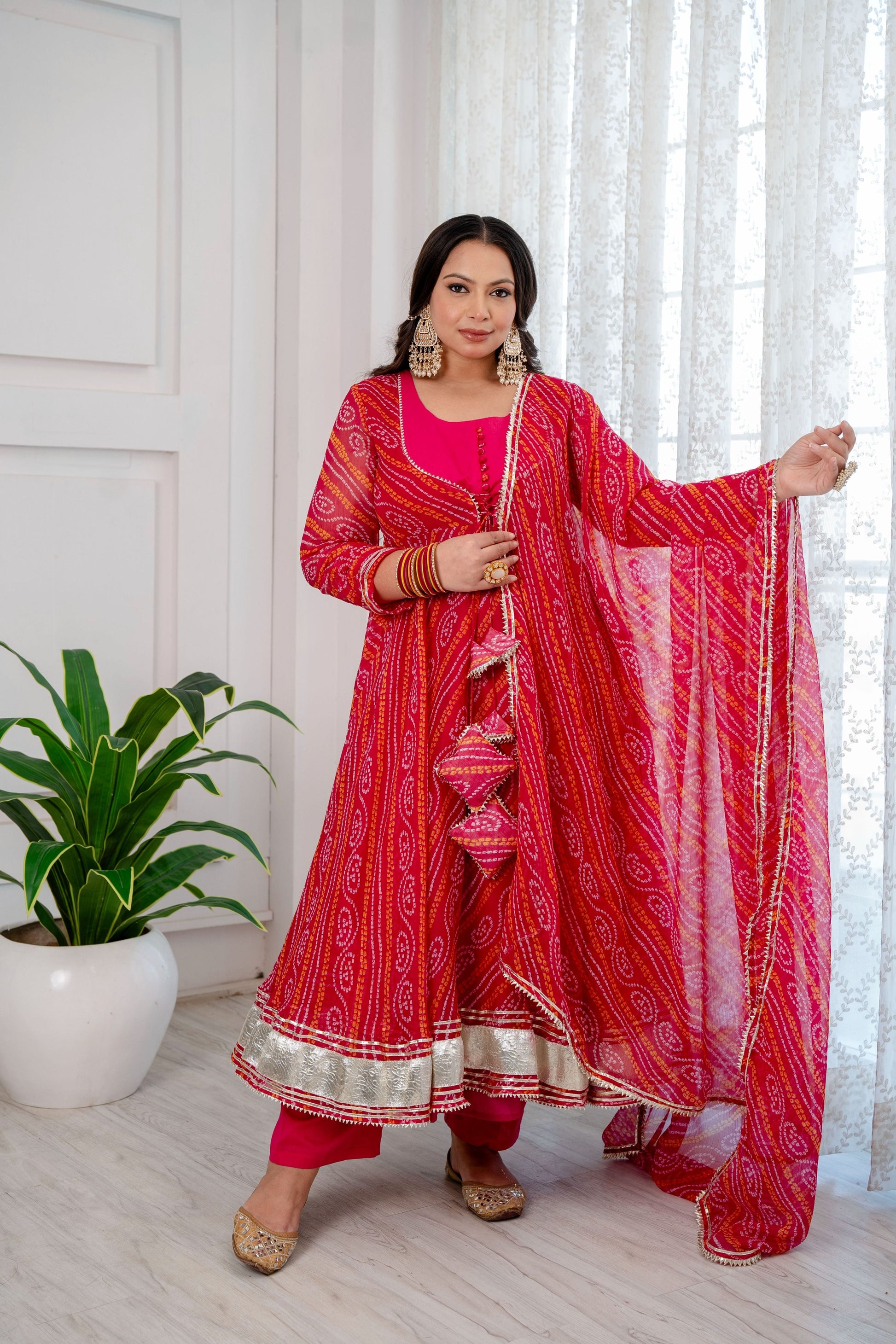 Gulabo Pure Chiffon Bandhani Suit Set