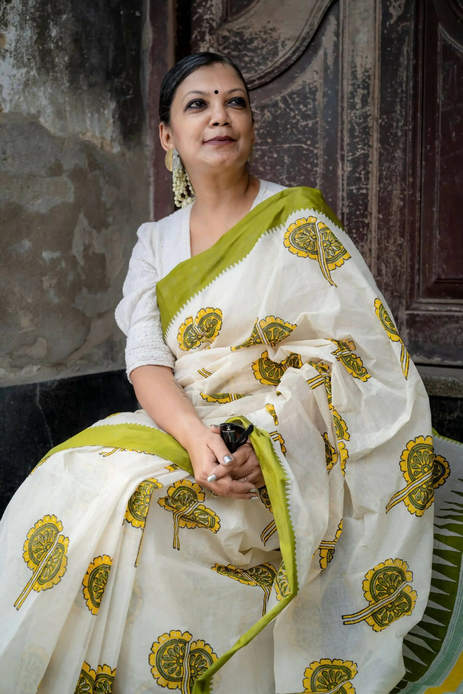Haath Pakha White Cotton Printed Saree