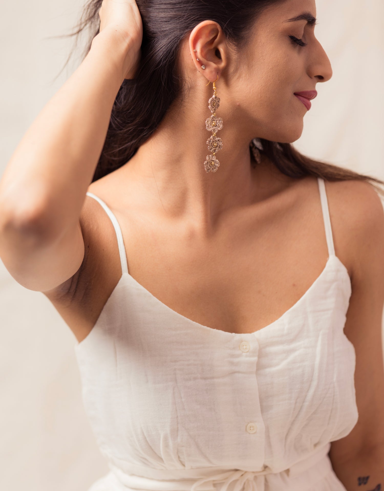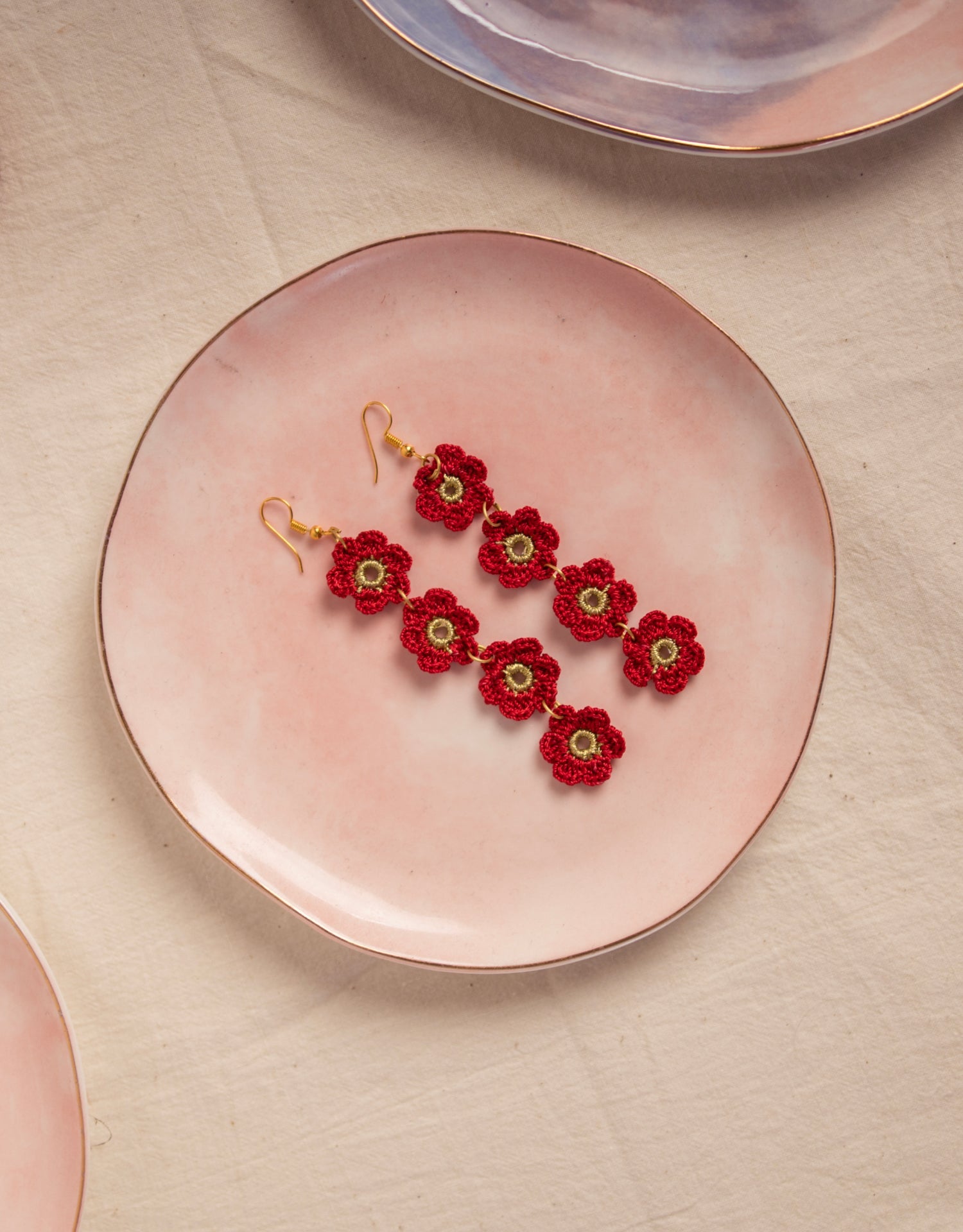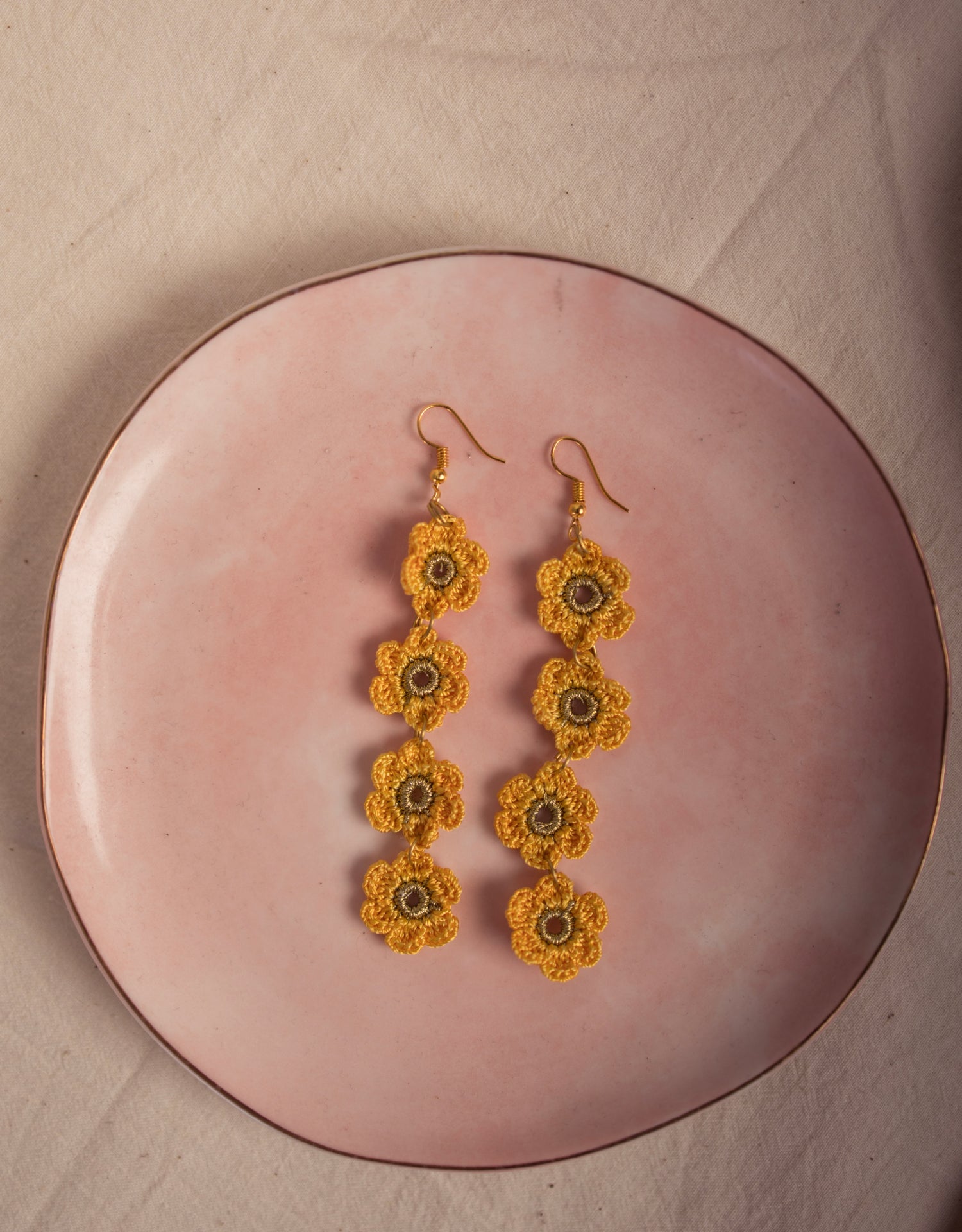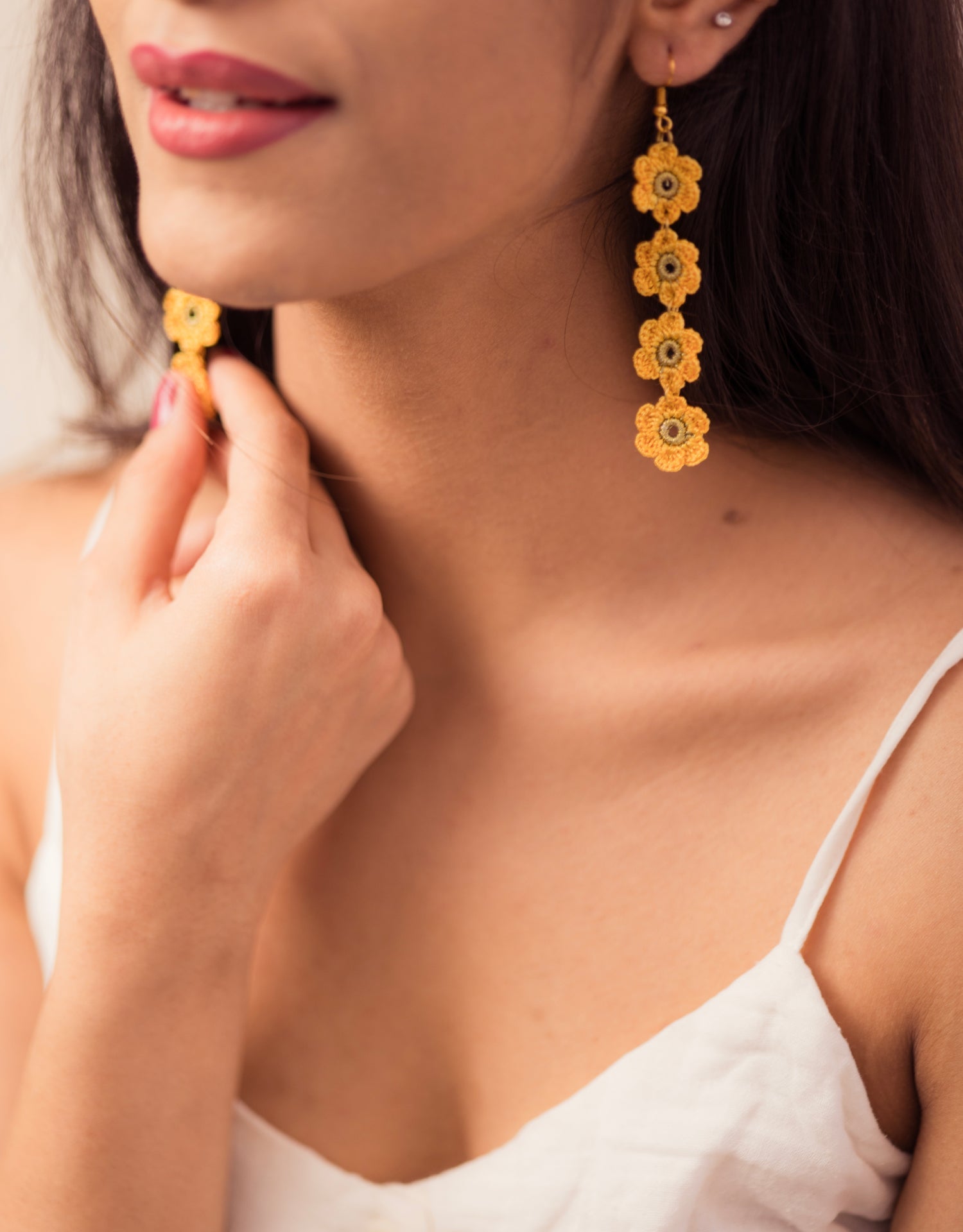 Discover our captivating hand-crocheted string drop earring — an exquisite blend of artistry and elegance. Thoughtfully handcrafted, this piece adds a graceful, lightweight touch to your ensemble, making it perfect for everyday charm or special occasions.