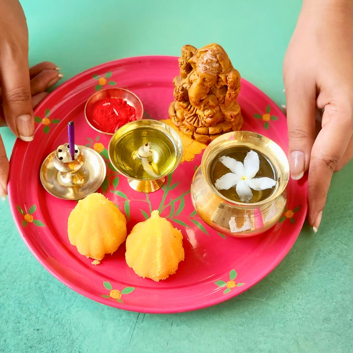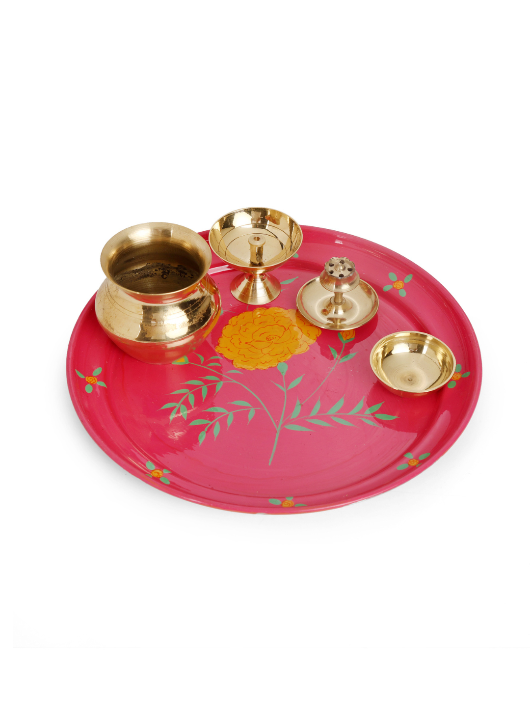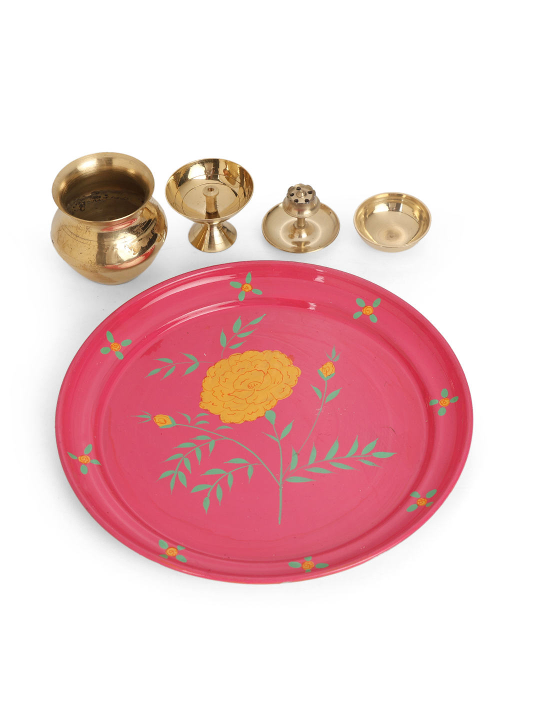Hand Painted Genda Painted Pooja Thali (Set of 5)