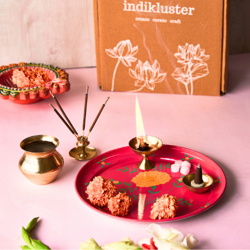 - Pack Contains: 1 Steel Thali, Brass Diya Jot, Brass Kalash, Brass Incense Stand, Brass Katori