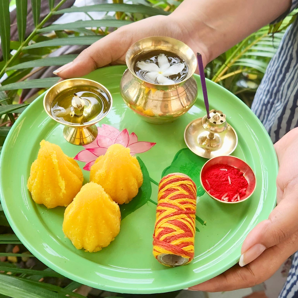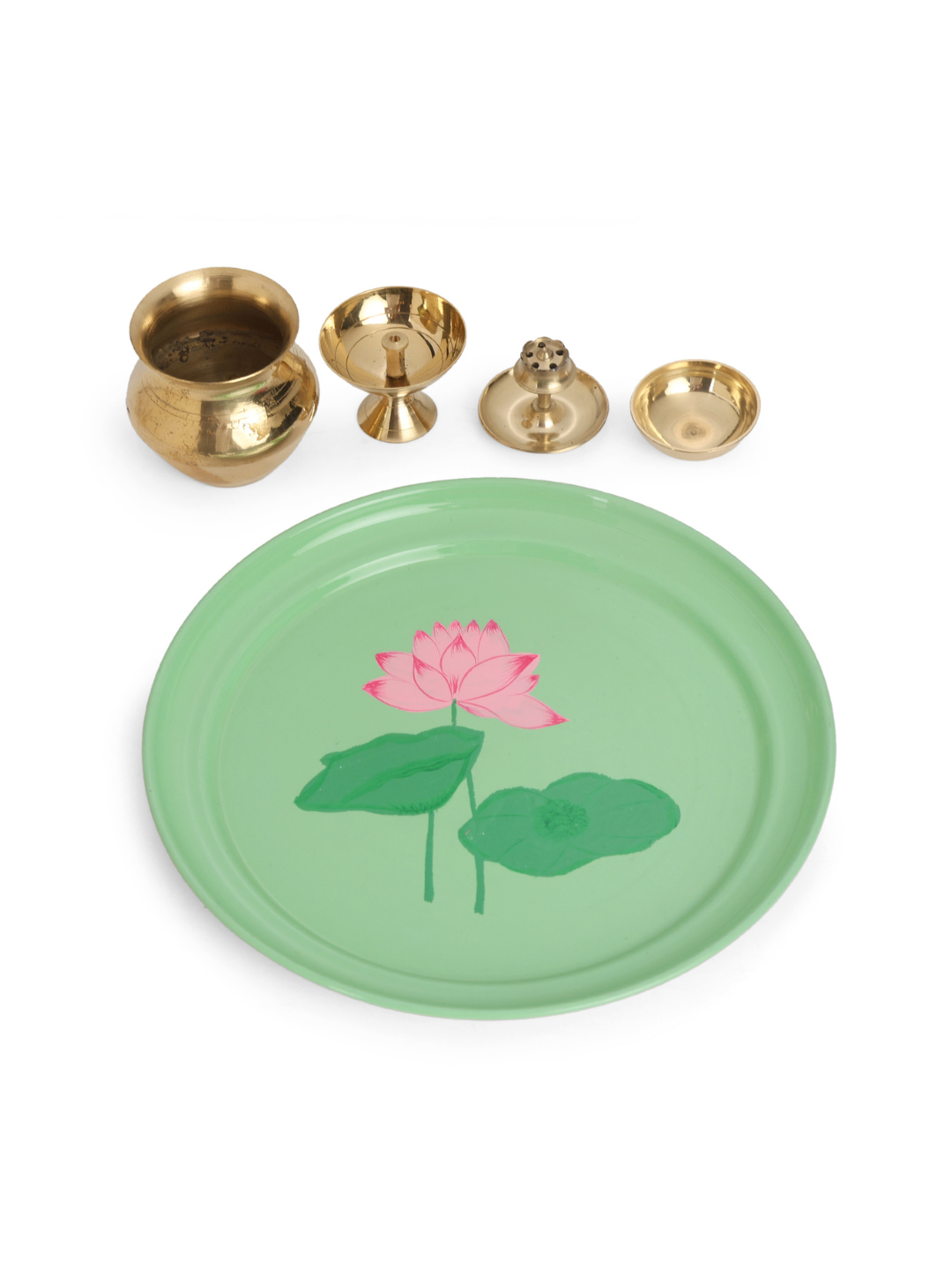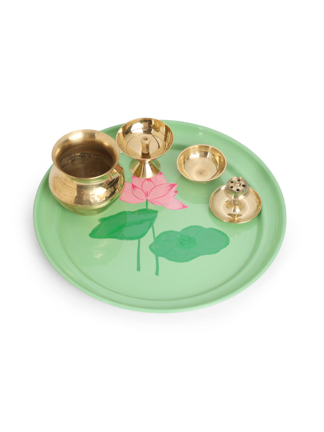 - Pack Contains: 1 Steel Thali, Brass Diya Jot, Brass Kalash, Brass Incense Stand, Brass Katori