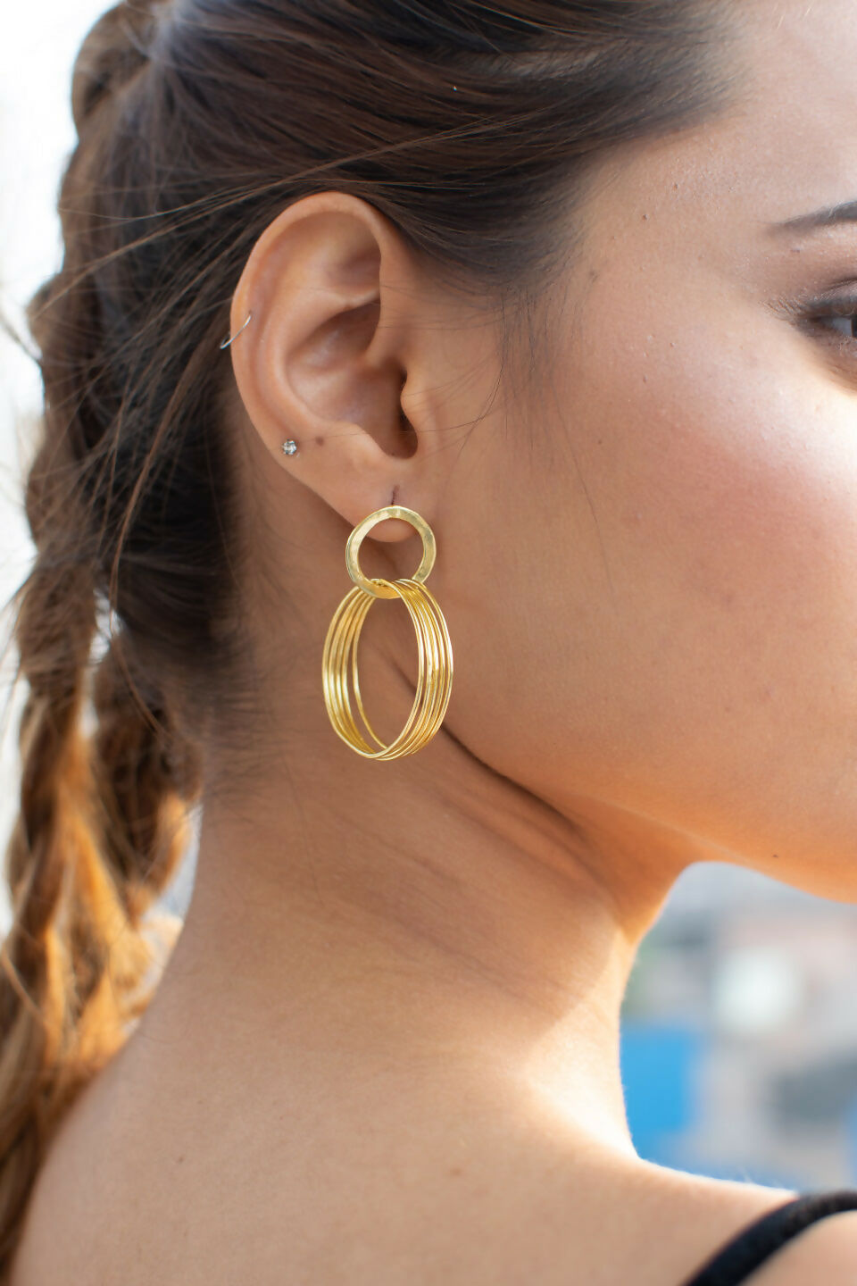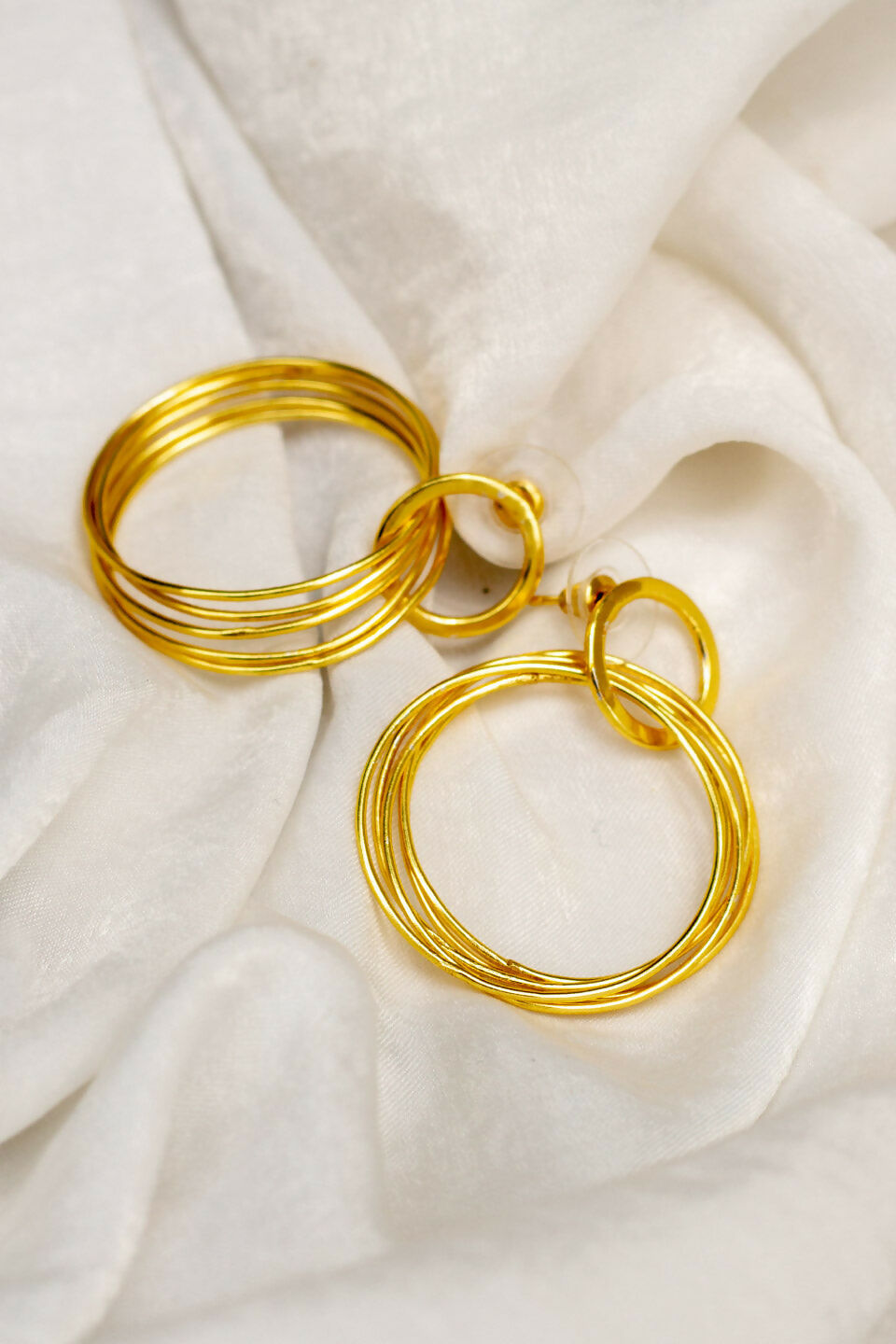 Leave it to us to go multiple or nothing by creating our most fanciful hoops yet, the Hula Hoops. This multiple hoop-like style is secured by a post back closure. They’re lightweight and perfect to let loose. Also, worth investing as it has 18kt gold plating and hence will last longer.