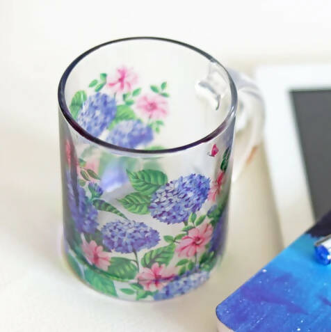 The Hydrangea Glass Mug is a beautiful floral illustration of the hydrangea flower. This unique coffee mug can make a wonderful gift for your loved ones or a beautiful addition to your own collection.