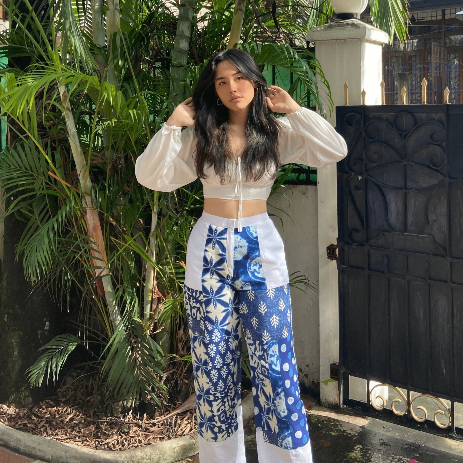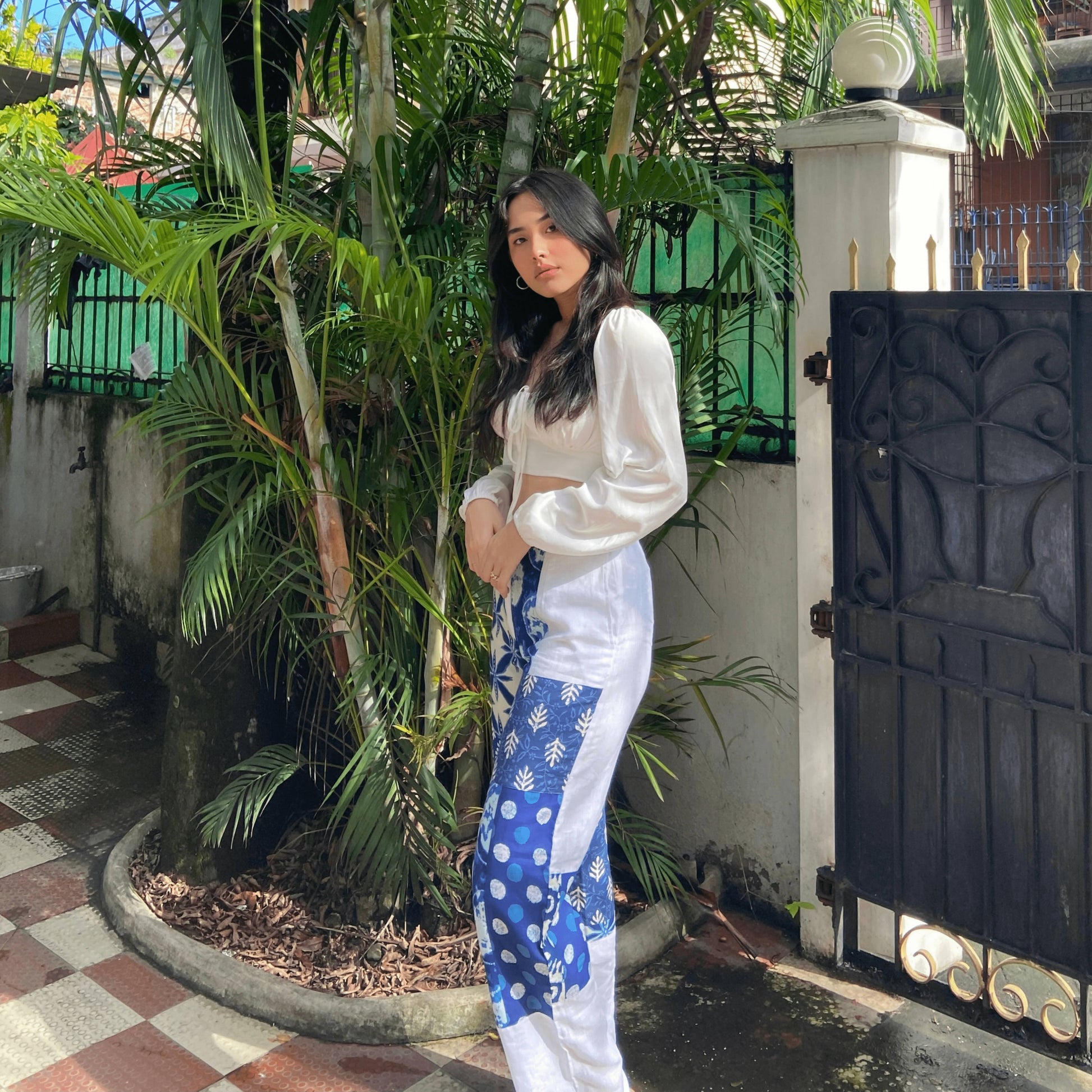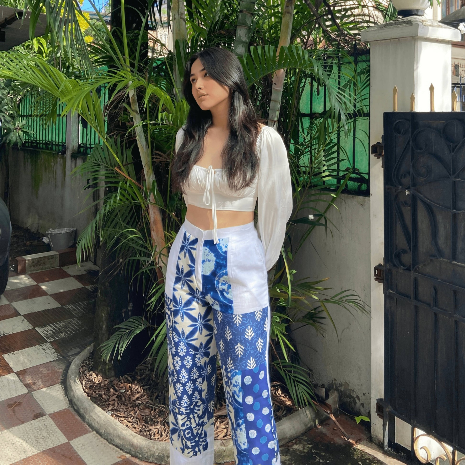 Indigo on white is definitely one of our favourite combinations. The various Indigo fabrics used for the pant's patchwork are thoroughly artisanal and culturally rich. These unisex indigo patchwork pants are one of our most classic pieces, perfect for any mood. The patchwork on these is completely up-cycled.