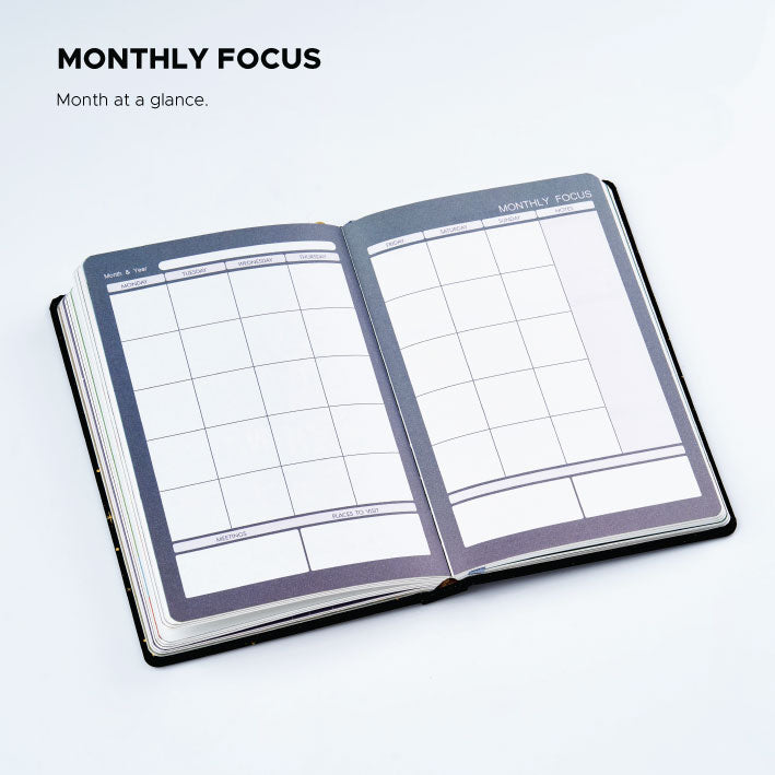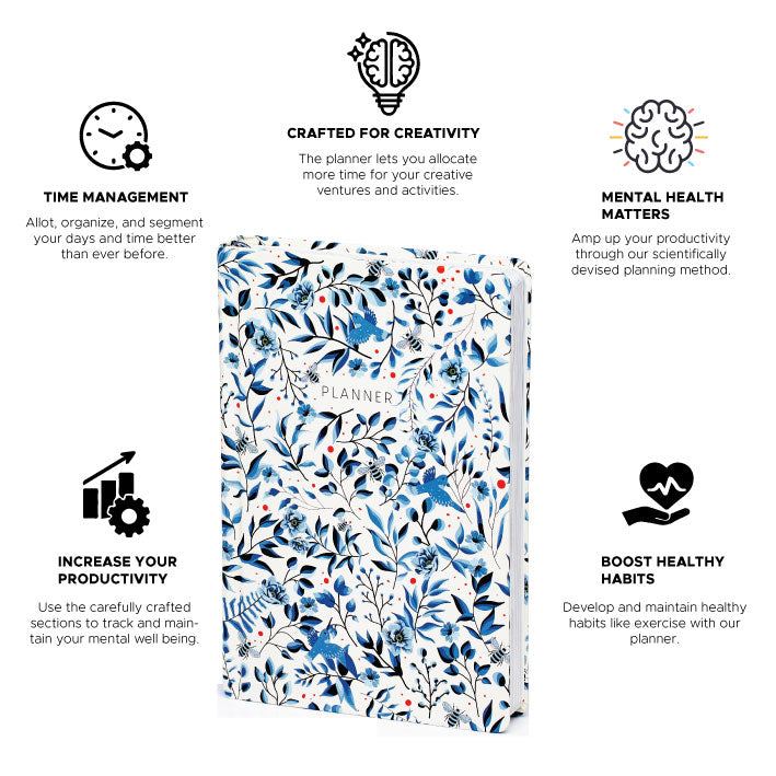 Sneak peek: 8 Sheets Stickers | Habit Trackers | Monthly stress-buster activities | Improvement Plan| Letter to Future Self| Vision Board | Sleep Trackers | Bucket & Anti-Bucket List | Budget Tracker | Monthly Dividers to motivate you| Self-Exploration Prompts to get to know yourself better | Monthly Affirmations | Mood Trackers | Monthly Reflections | Weekly reflection | Monthly Meal Planning | Shopping List | Reminders | Reading & Learning List | Movies & Series Watchlist | Wishlist | Possessions List | Annual Vacation Plan | 3 Bookmark ribbons | Inner pocket for storage