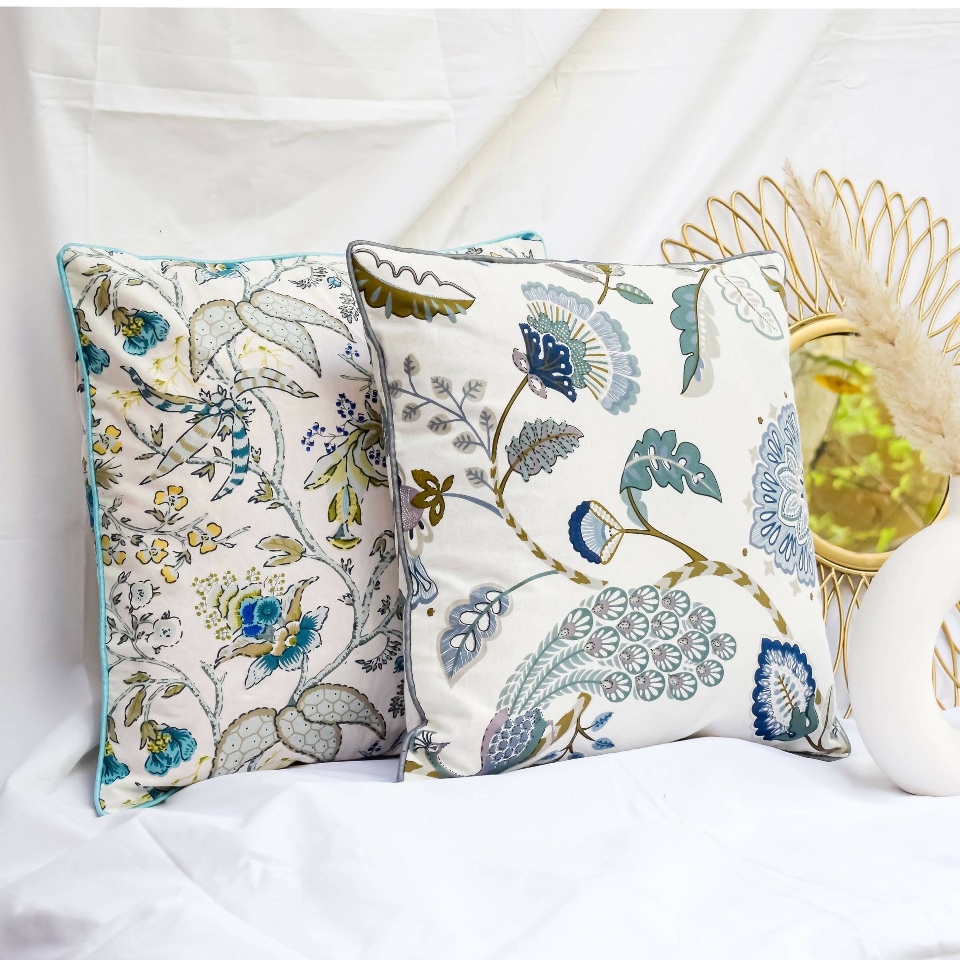 Classic Indigo motifs, this all-over printed cotton cushion cover is the way to go when you feel like giving your space a makeover. Find class, style and sophistication-all at once with this indigo cushion cover set. All Saga products are ethically made with efforts and love- this one in particular is a 100% premium cotton Cushion cover with a polyester back.