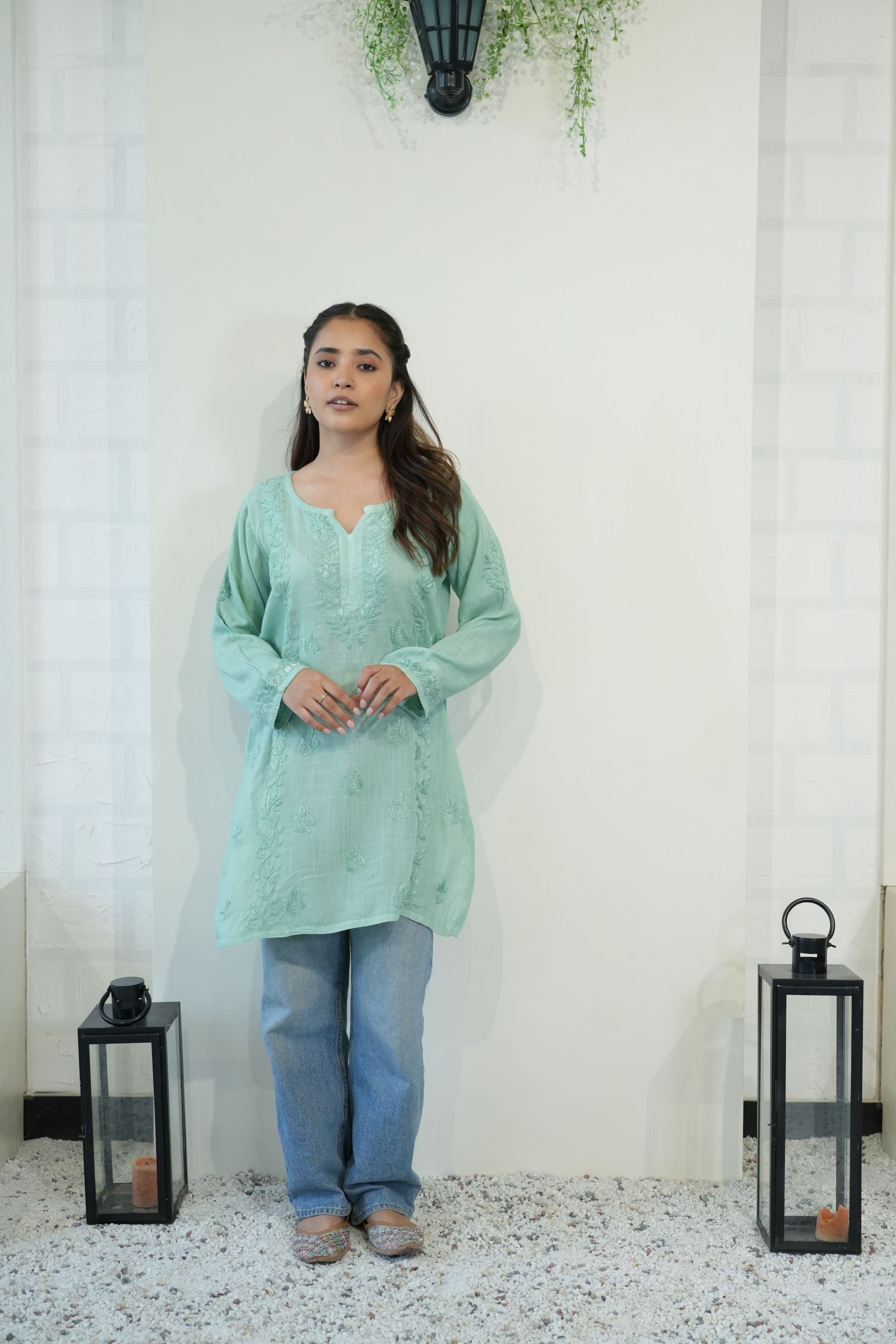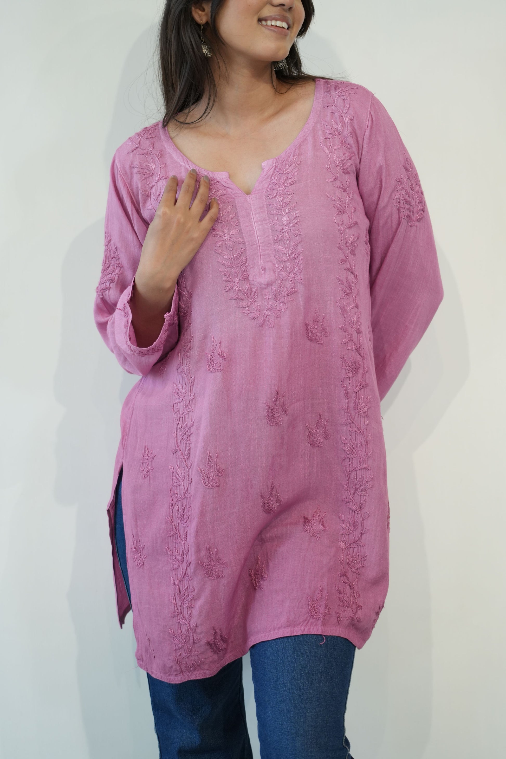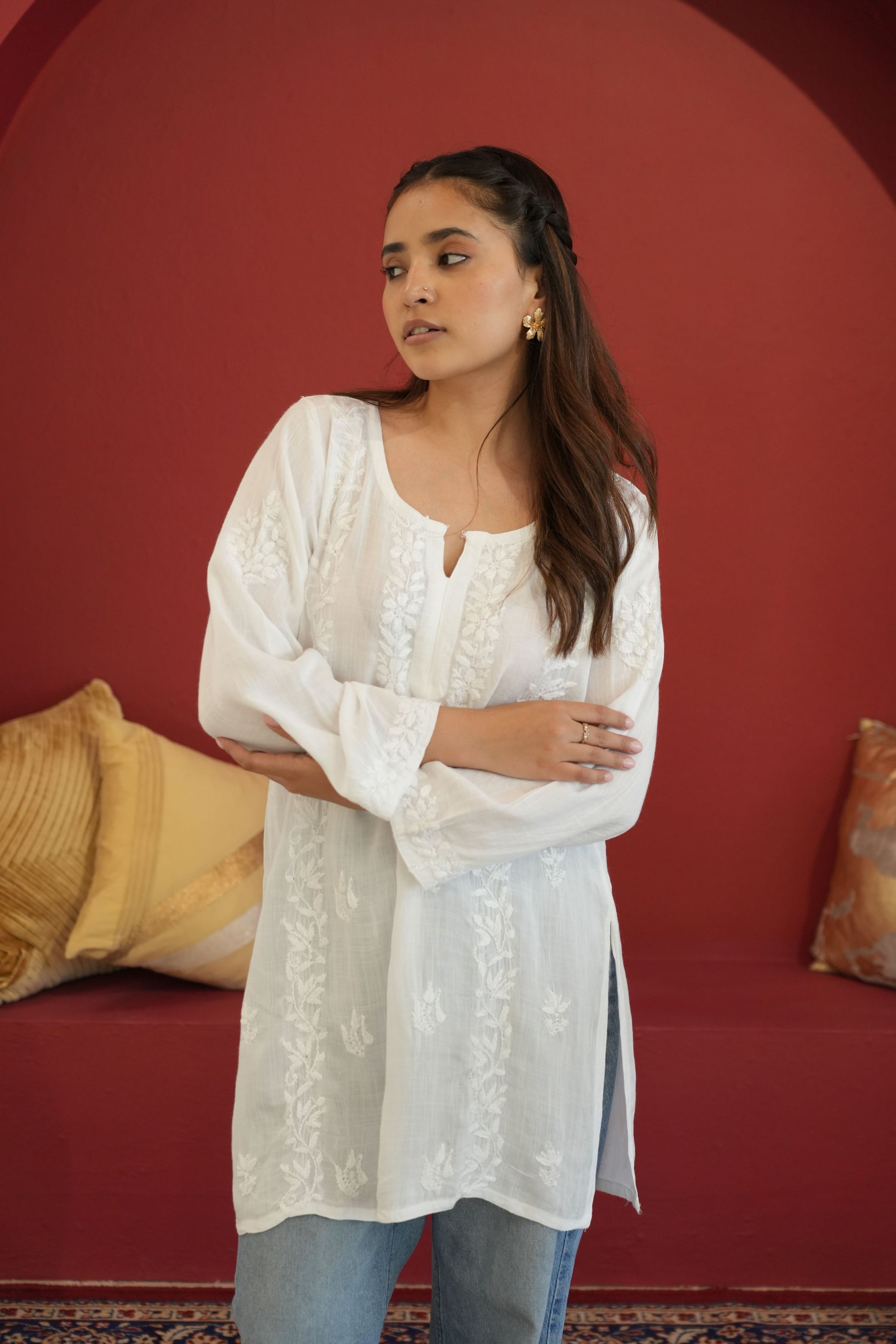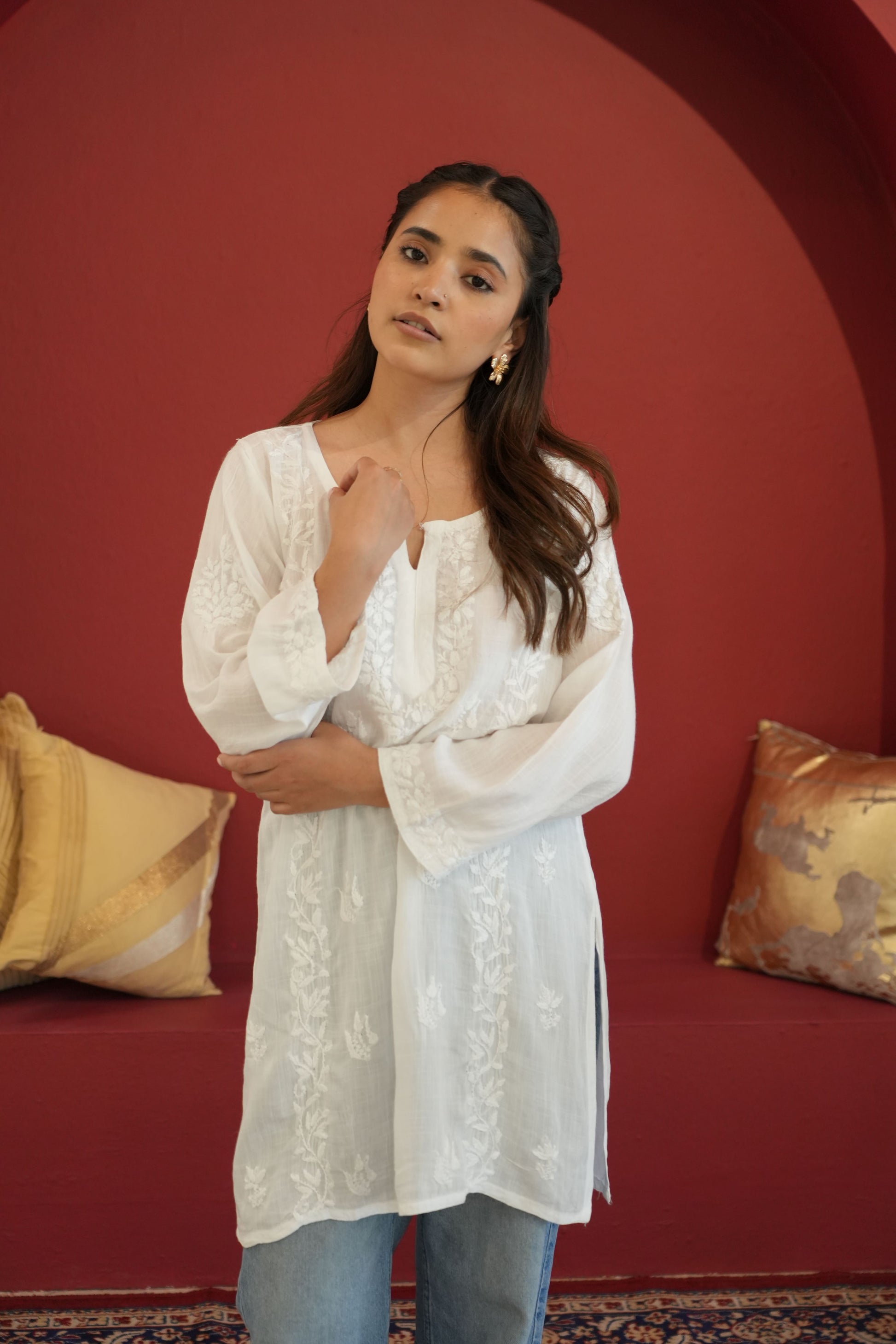 Made from premium quality soft and flowy linen cotton fabric, this kurta features delicate Chikankari embroidery, a centuries-old art form originating from the heart of India. Perfect for both casual outings and special occasions, our Chikankari Short kurta effortlessly blends classic charm with modern style.