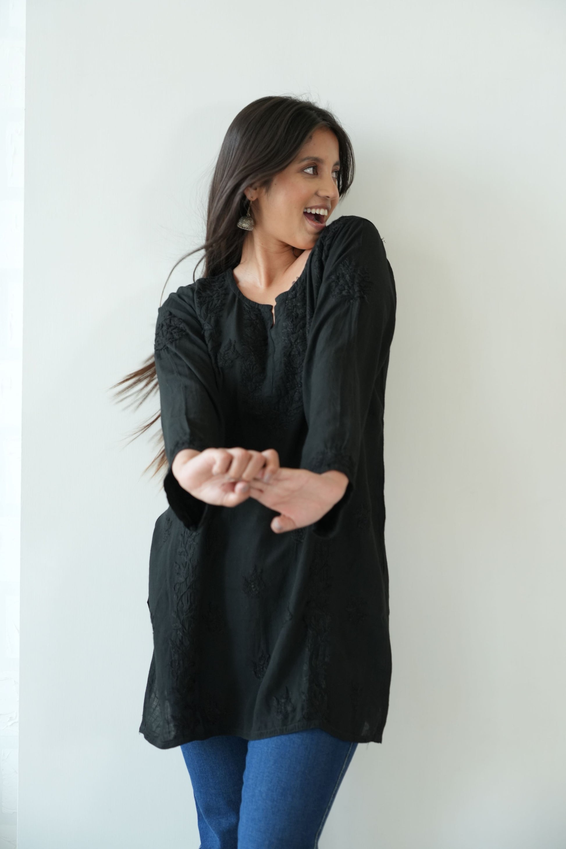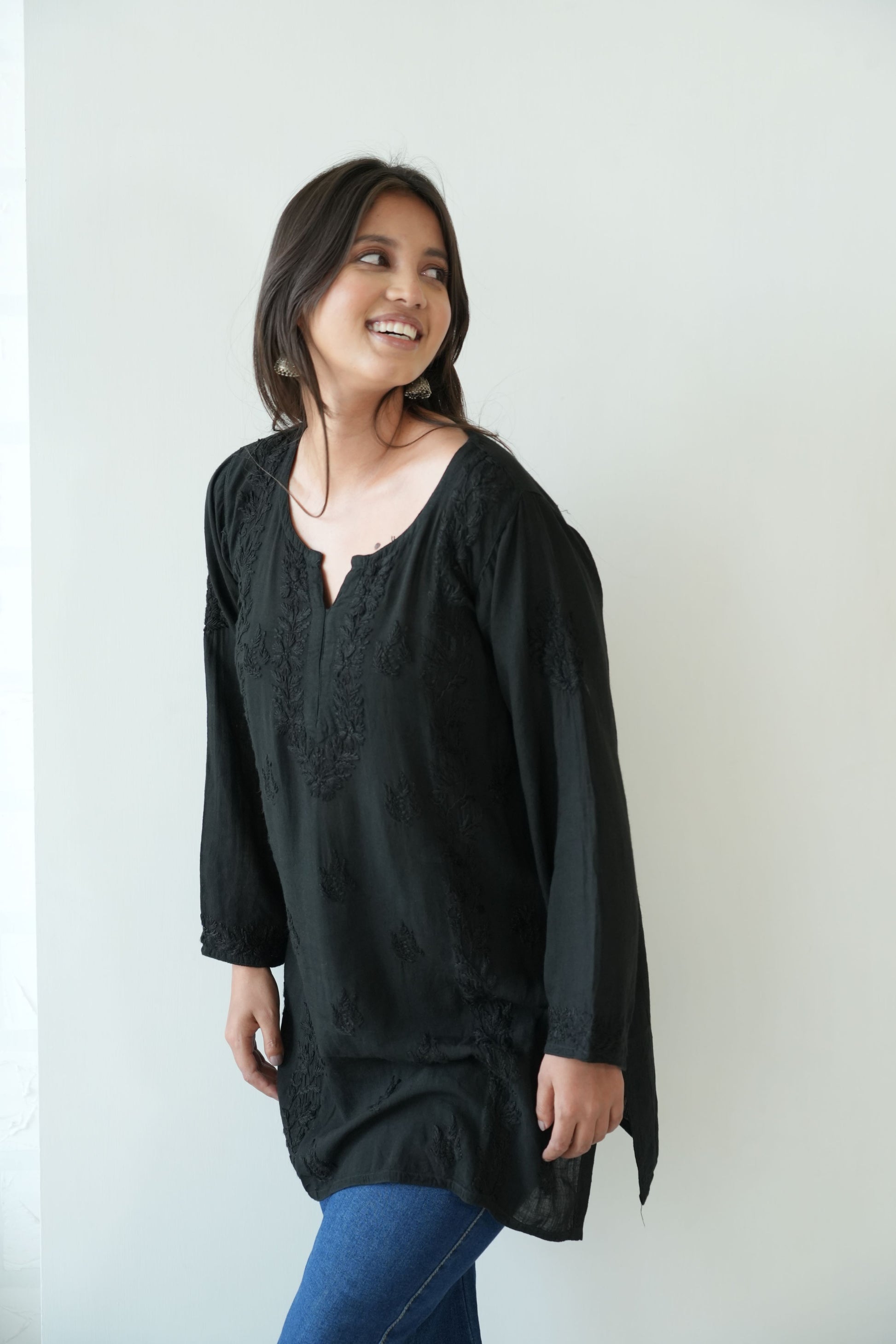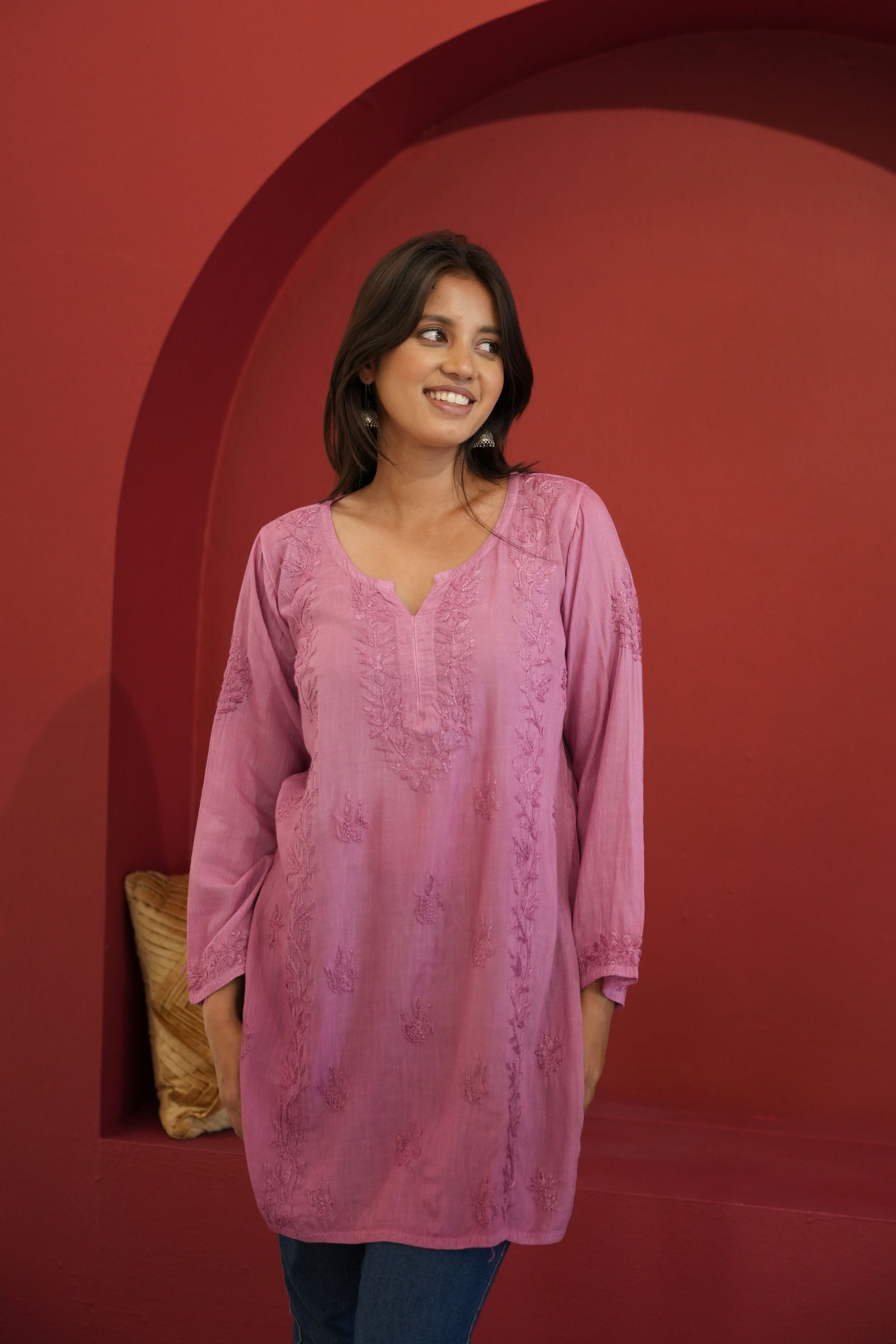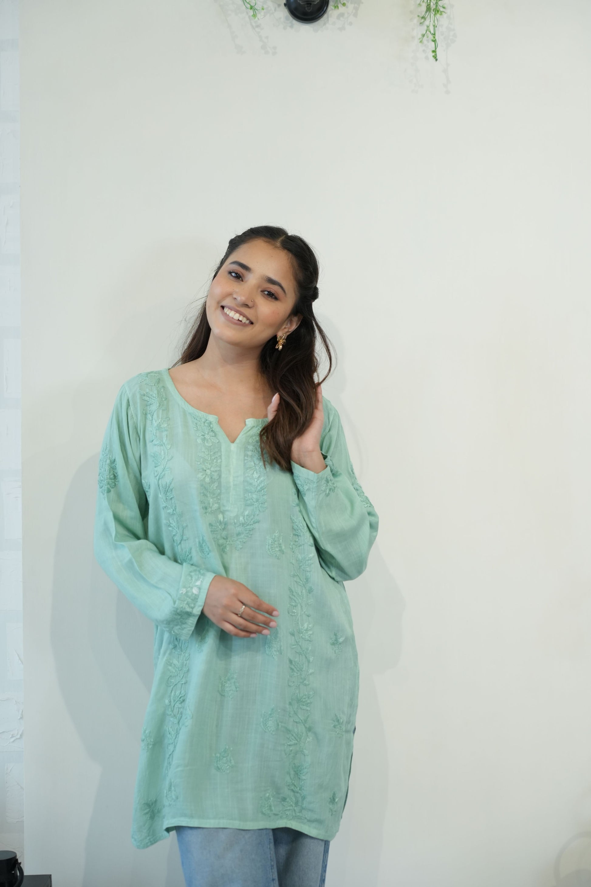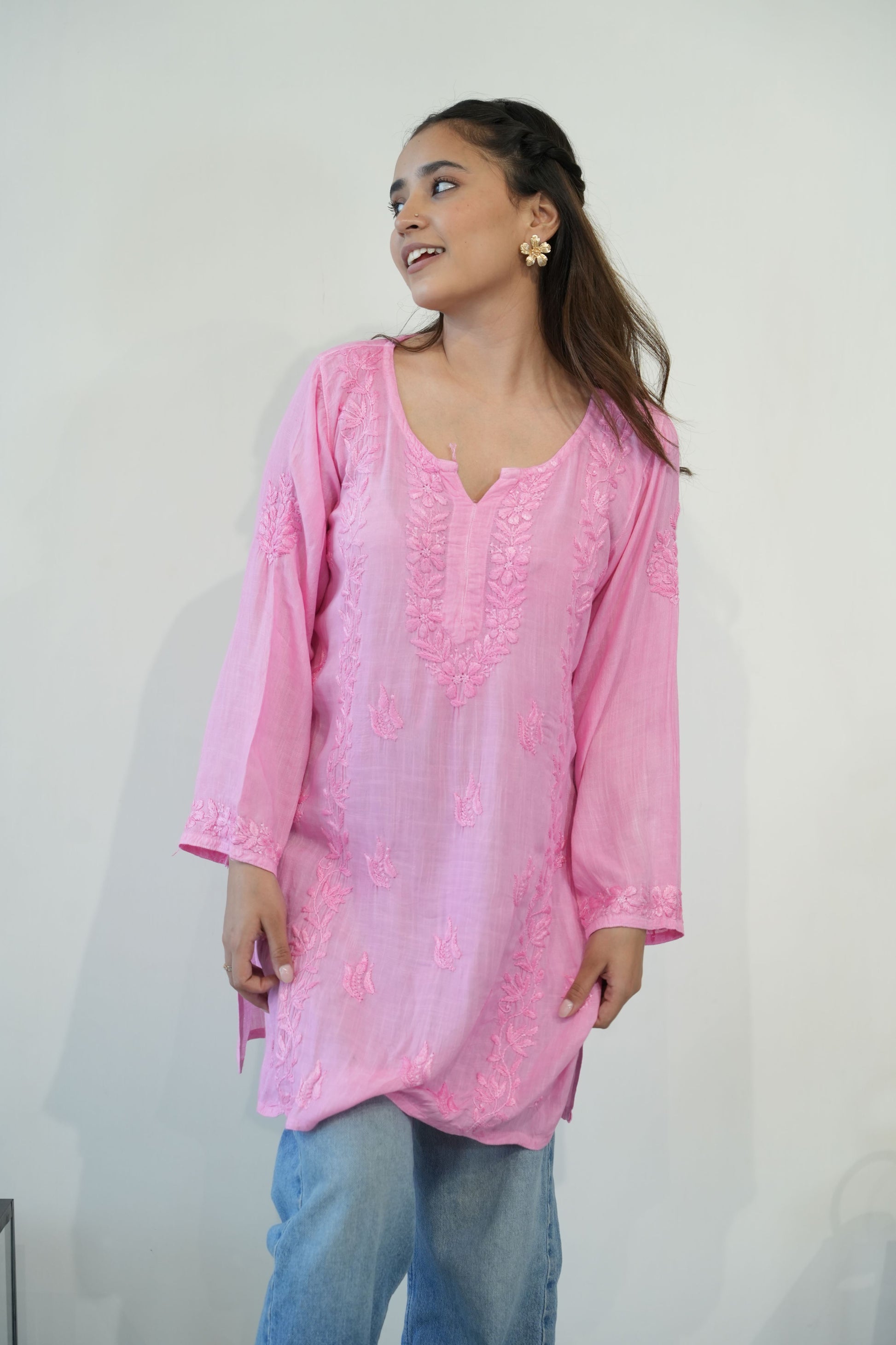 Made from premium quality soft and flowy linen cotton fabric, this kurta features delicate Chikankari embroidery, a centuries-old art form originating from the heart of India. Perfect for both casual outings and special occasions, our Chikankari Short kurta effortlessly blends classic charm with modern style.