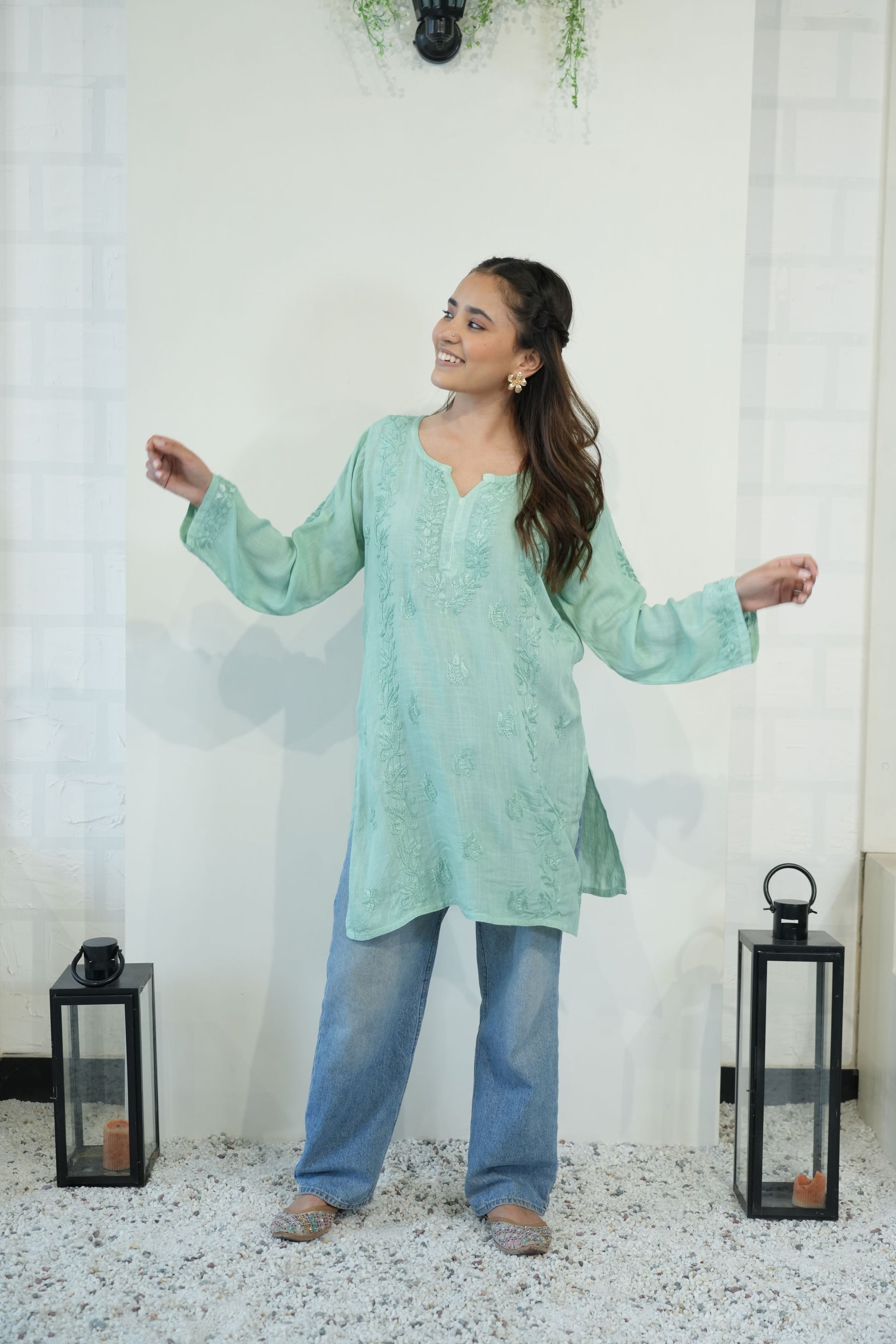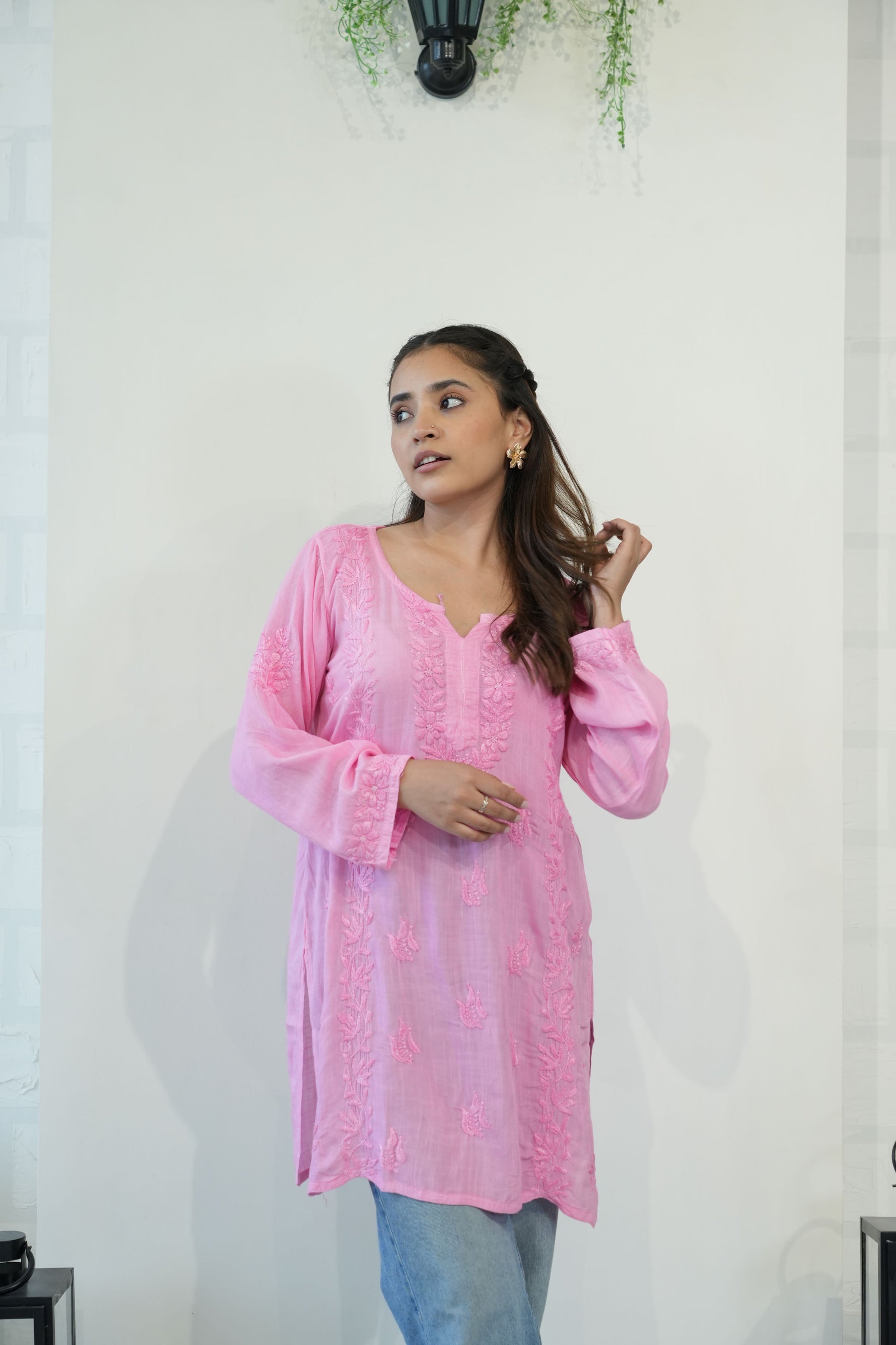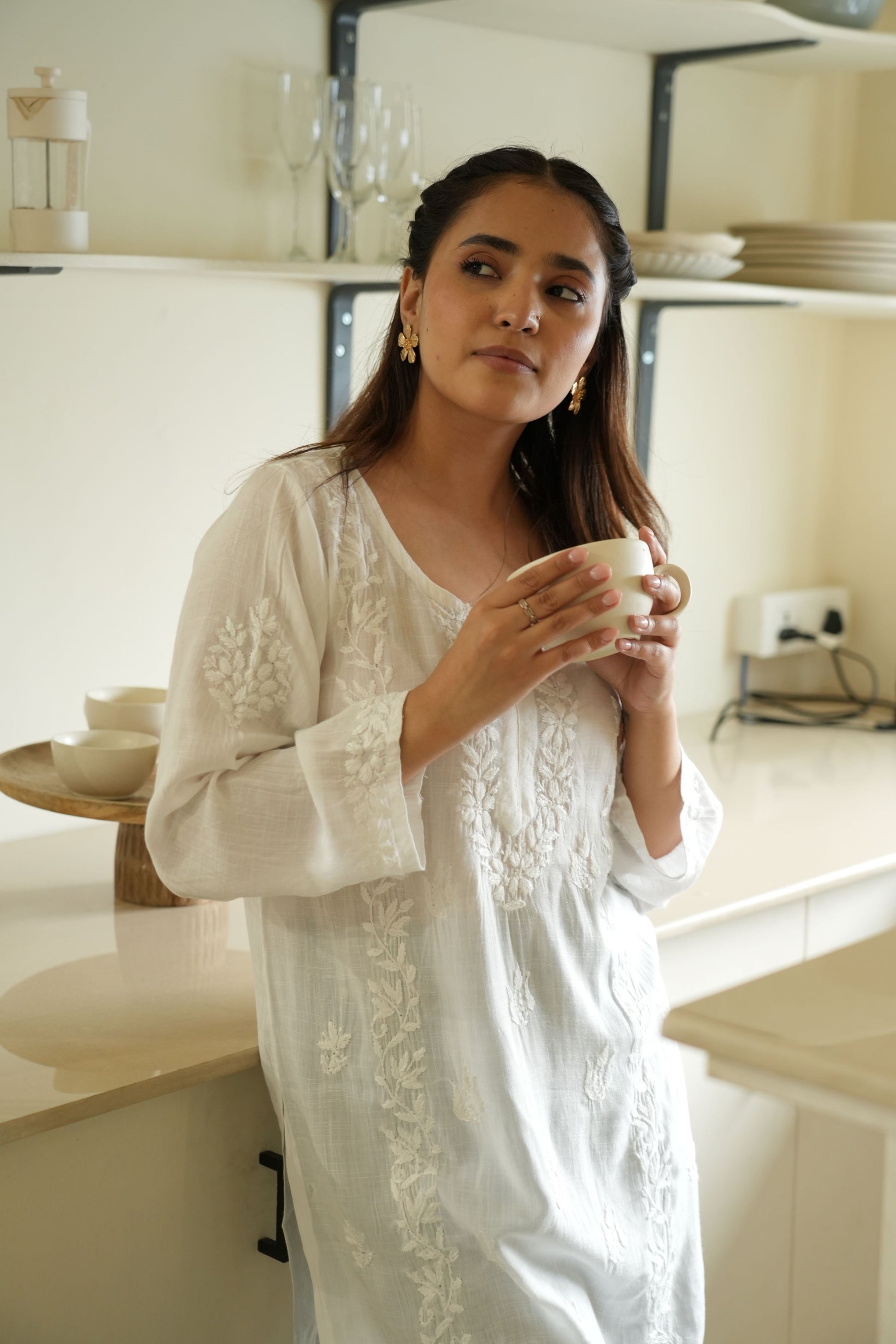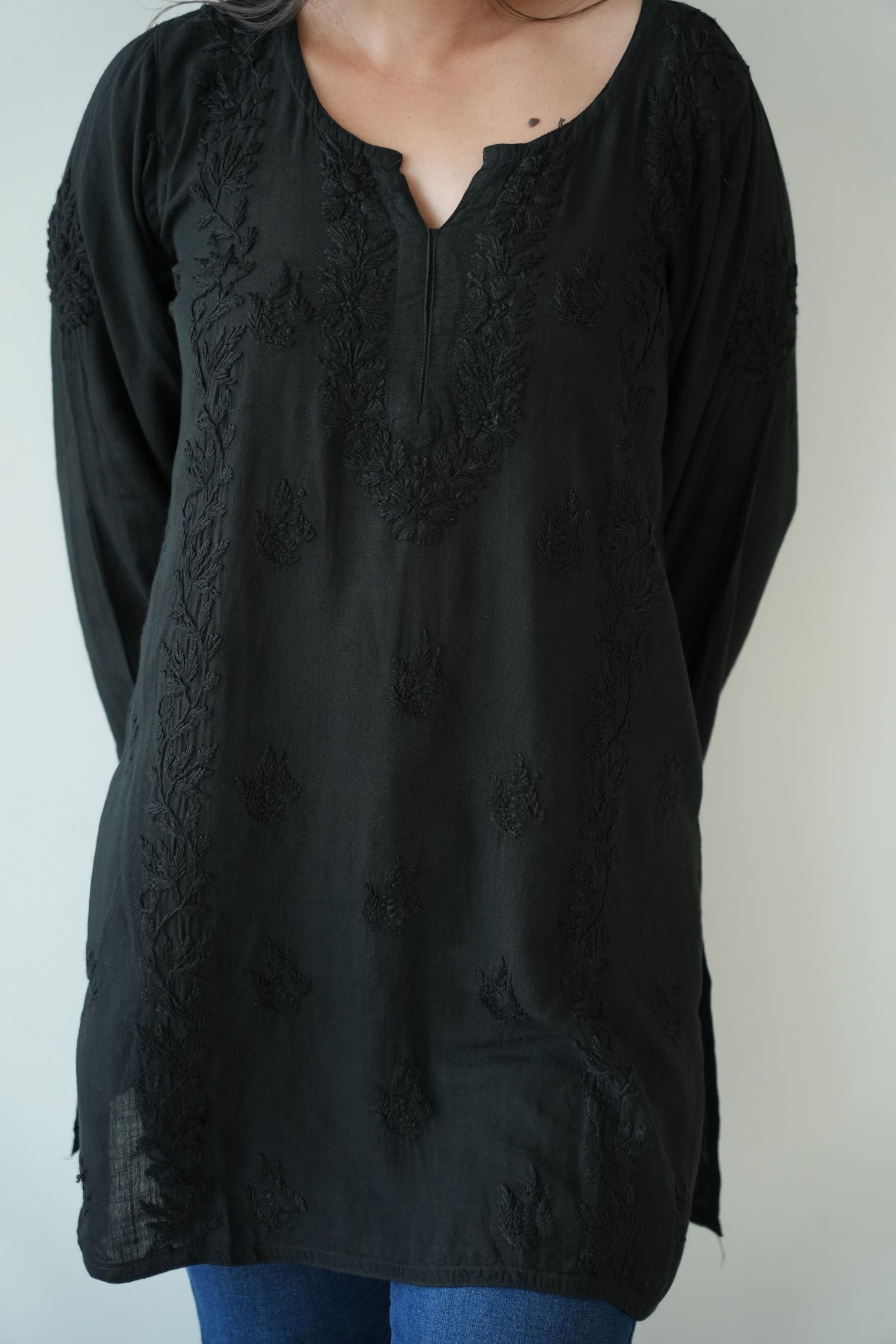 Made from premium quality soft and flowy linen cotton fabric, this kurta features delicate Chikankari embroidery, a centuries-old art form originating from the heart of India. Perfect for both casual outings and special occasions, our Chikankari Short kurta effortlessly blends classic charm with modern style.