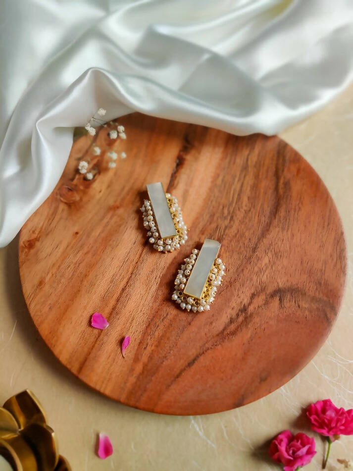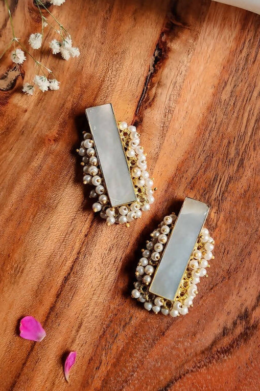 Elevate your style and bring a touch of timeless elegance to your look with these stunning mother of pearl brass studs on a rectangular shape. Whether you want to add a touch of sophistication to your everyday attire or make a statement at a special event, these studs are sure to captivate attention and become a cherished addition to your jewellery collection.