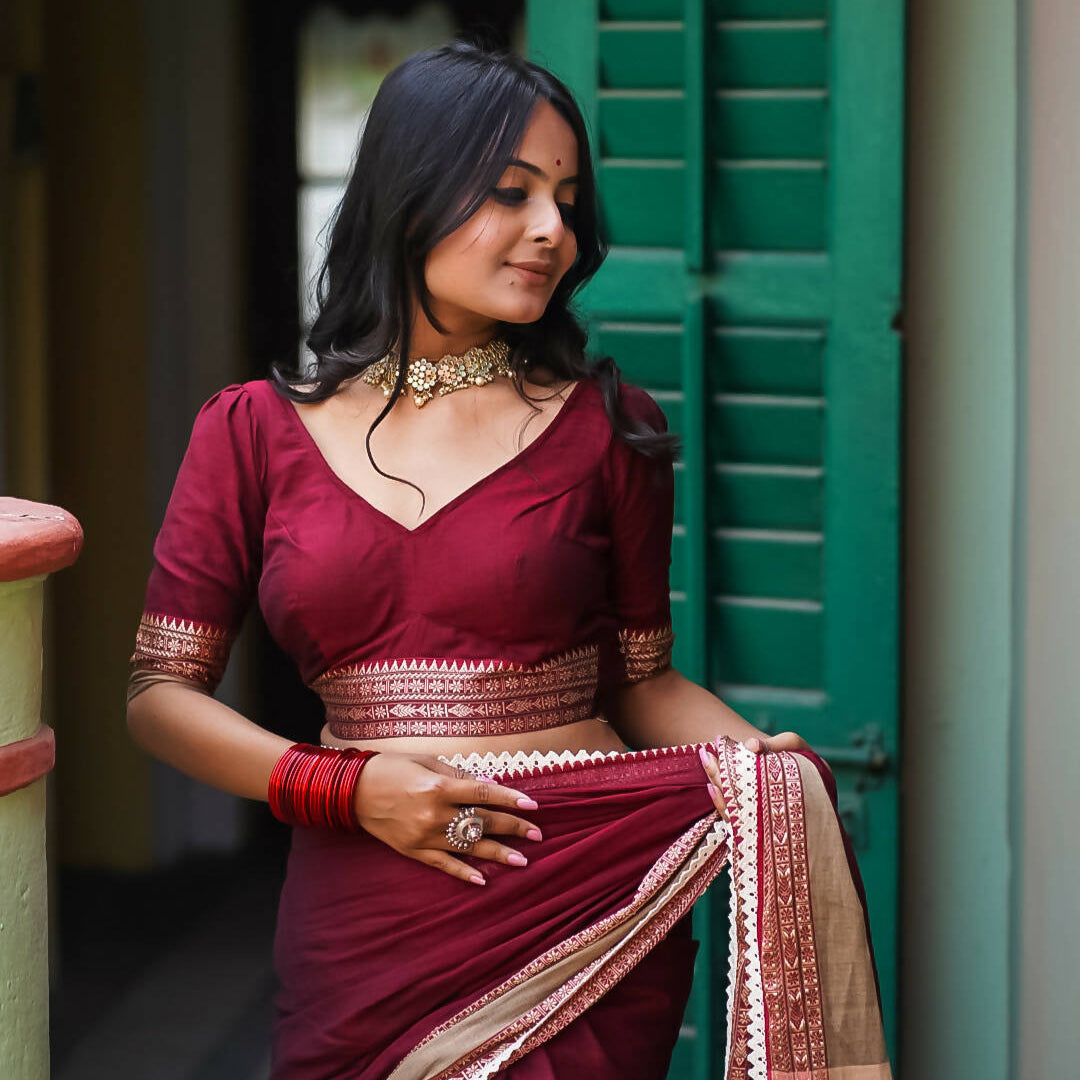 Elegantly designed to complement any saree, this blouse is a timeless fusion of tradition and style. And a perfect piece to add a statement to your attire, comes with lining for both body and sleeves. Pair it with a monotone saree or go all over by pairing it with a contrast saree. This one will surely will be a statement piece in your wardrobe.