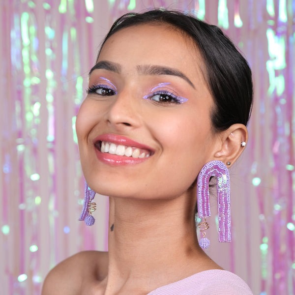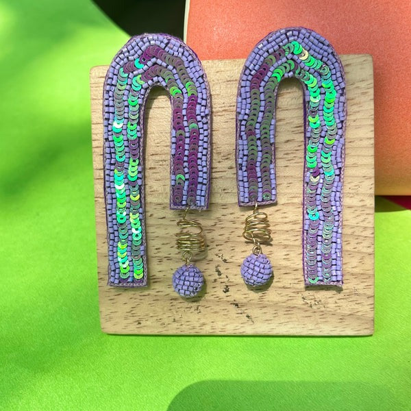 Judy earrings inspired by abstract art and featuring a lilac color scheme embody a fusion of artistic expression and elegant design. The earrings are adorned with a stunning lilac color palette, reminiscent of delicate spring blossoms. These earrings are crafted by beads and sequence.These earrings in lilac are versatile accessories that can complement a wide range of outfits and occasions. Whether paired with casual attire for a touch of whimsy or worn with formal ensembles for a sophisticated edge, they add a dash of personality and style to any look.💜