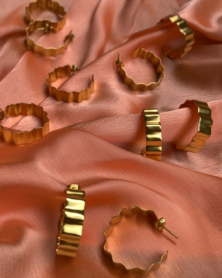 These matte gold irregular hoop earrings are designed with a modern twist on a classic look!