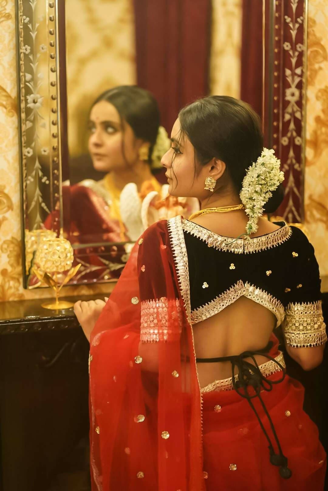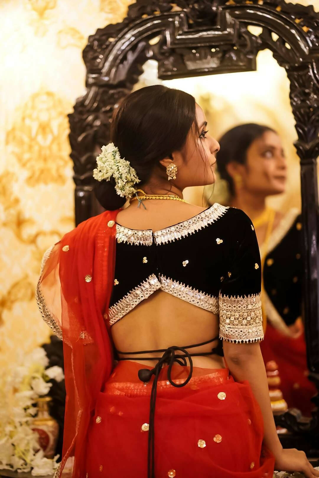 Elegantly designed to complement any saree, this blouse is a timeless fusion of tradition and style.