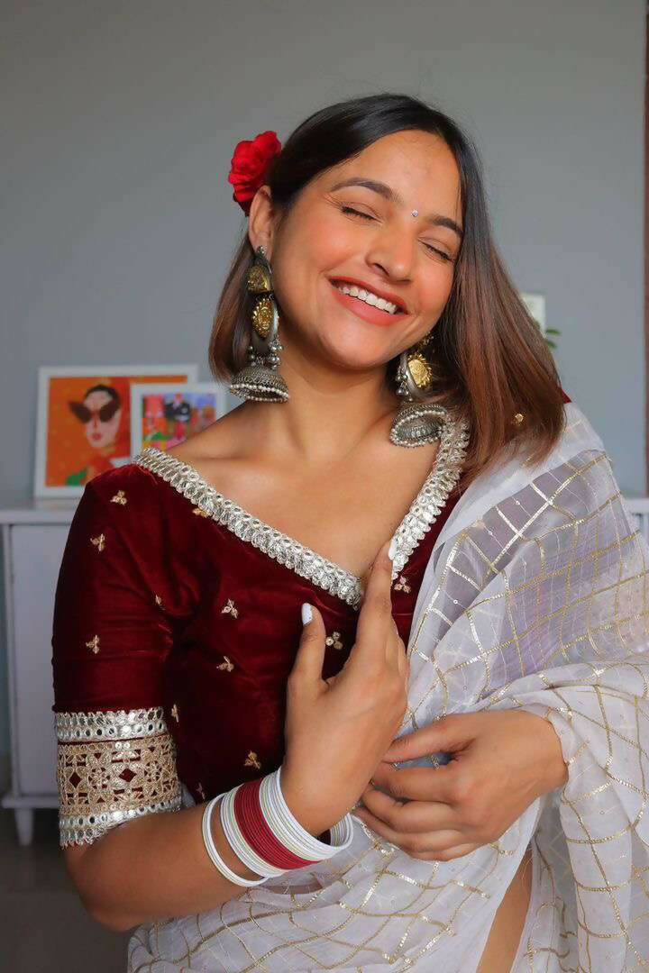 Kamini in Maroon Blouse