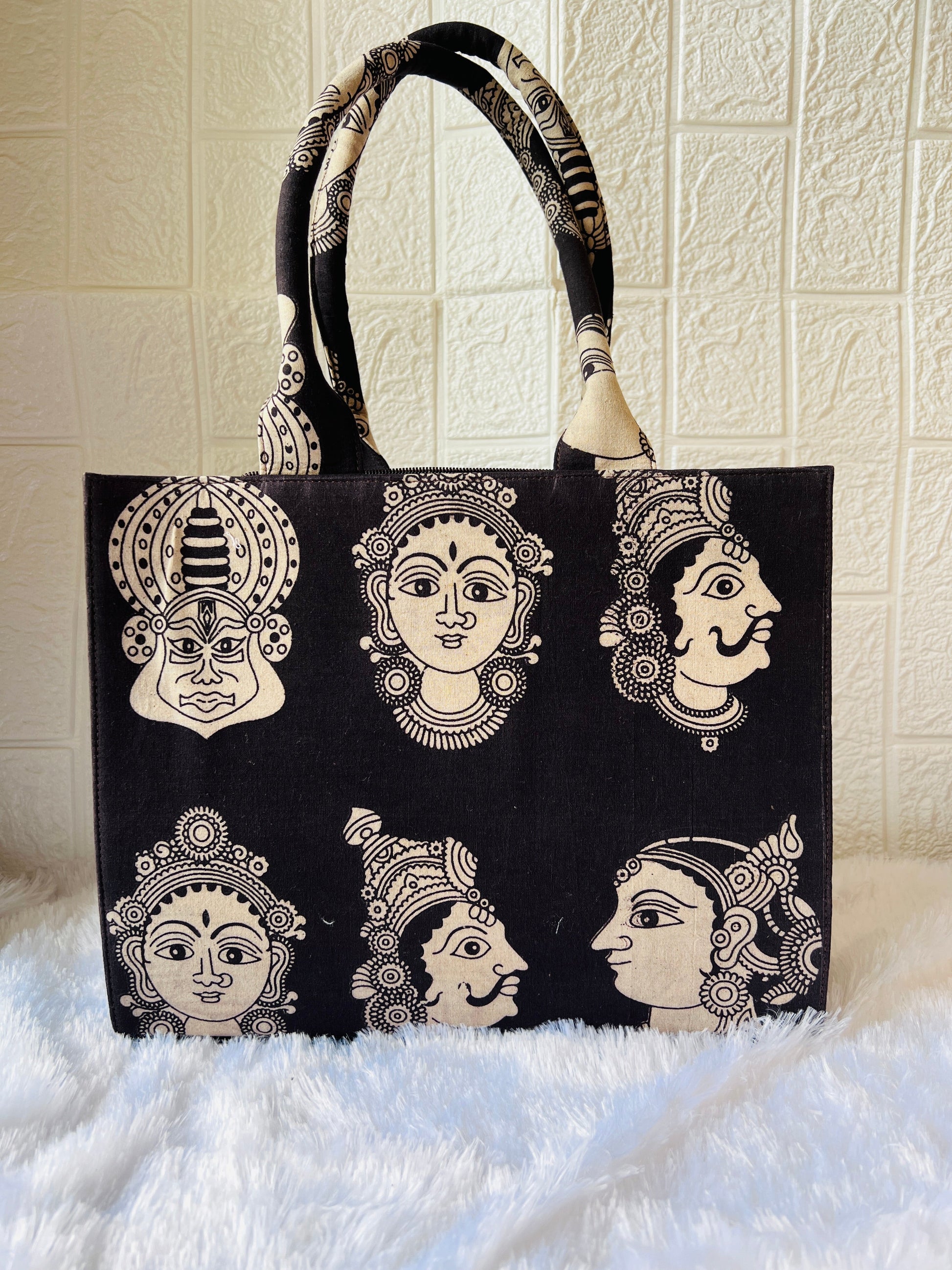 Add a quirk to your ouftit with this Kathak figurine printed bag that is perfect for a grocery run or daily office use!