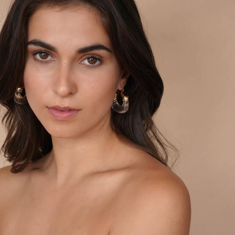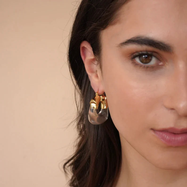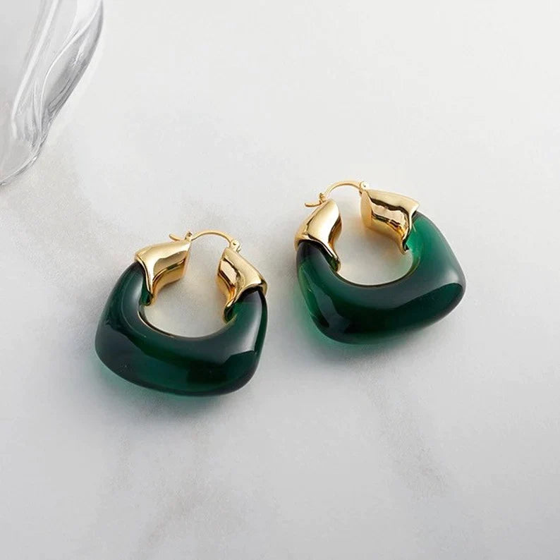 Classic yet trendy, these Chunky Resin Hoop Earrings will suit anyone's style. Featuring a retro square oval style shaped hoop earring made from resin in green and clear colour.