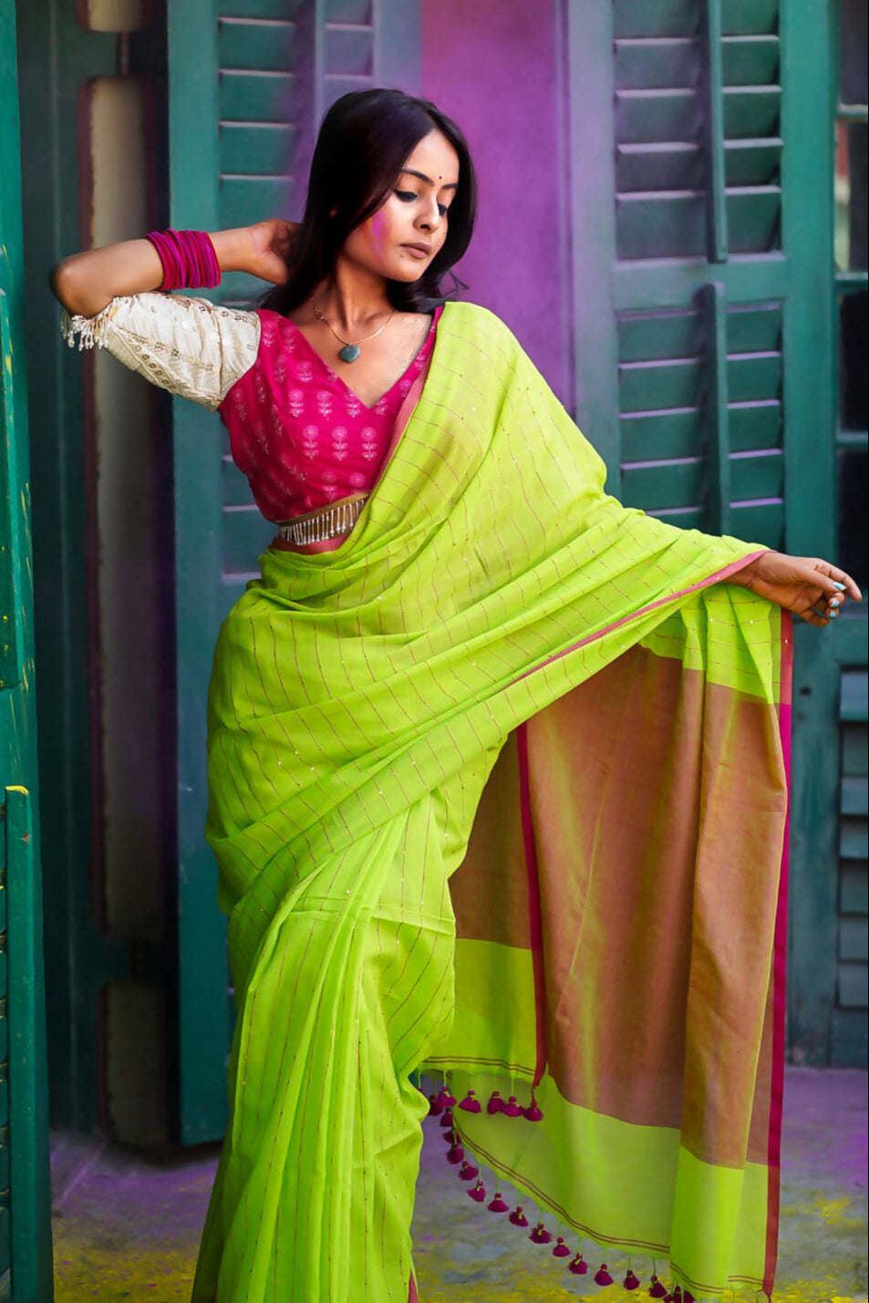 1. The blouse worn by the model is not part of the saree.