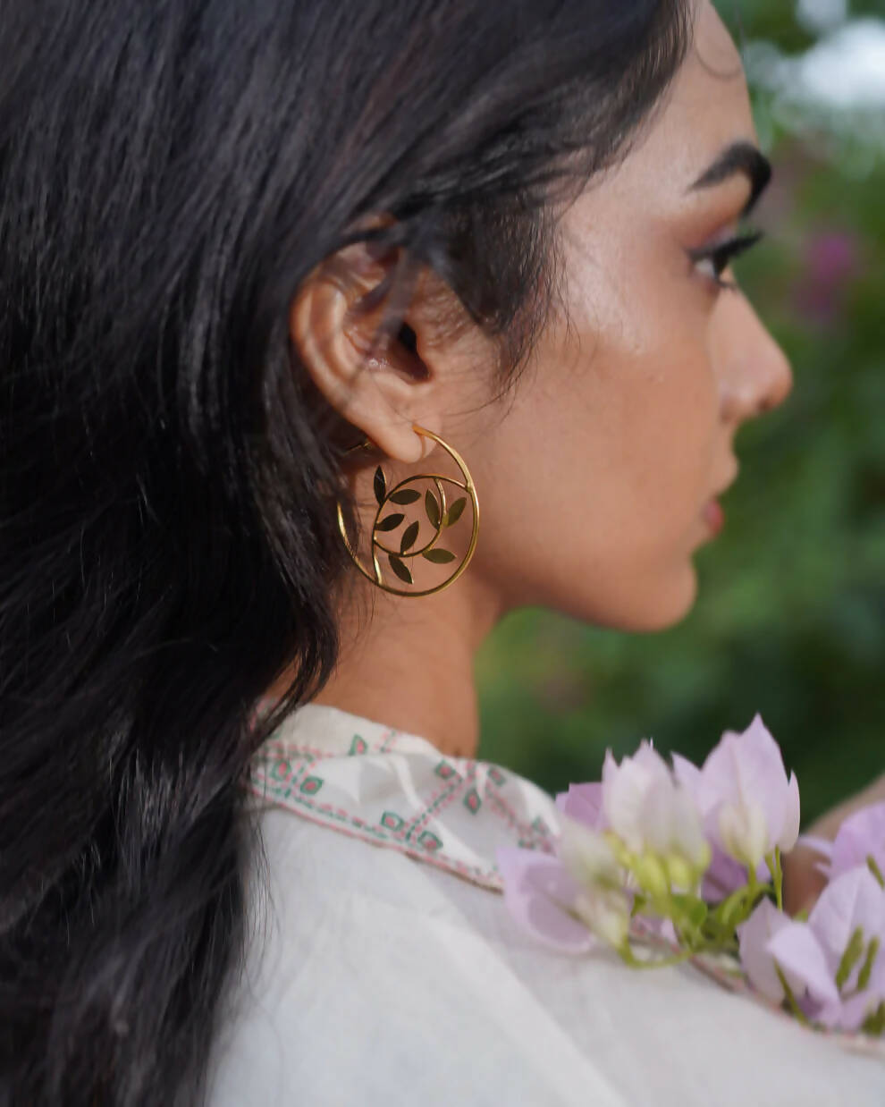 Materials: Our delicate yet unique hoops are extremely light weight, made in 100% hypoallergenic nickel and lead free hypoallergenic brass, are coated in 22k gold plating. Measures 50 mm in diameter, you're sure that things are always looking up with our Kimaya Hoops