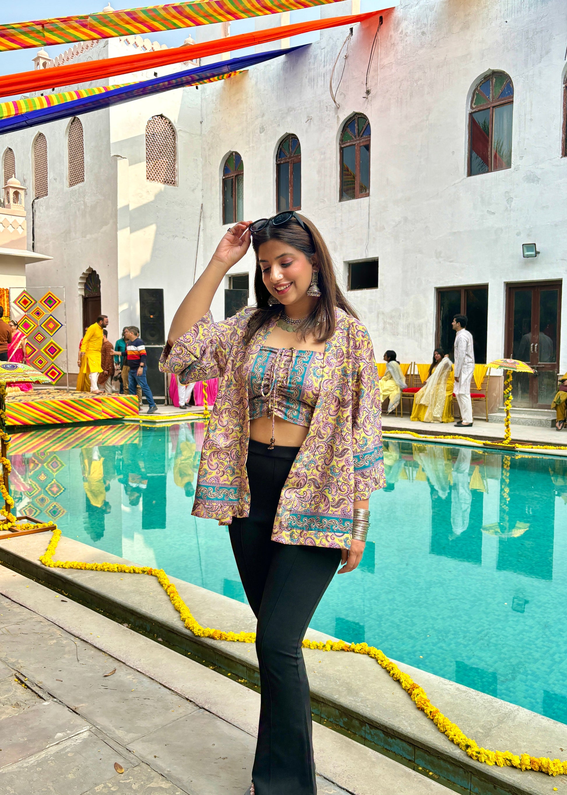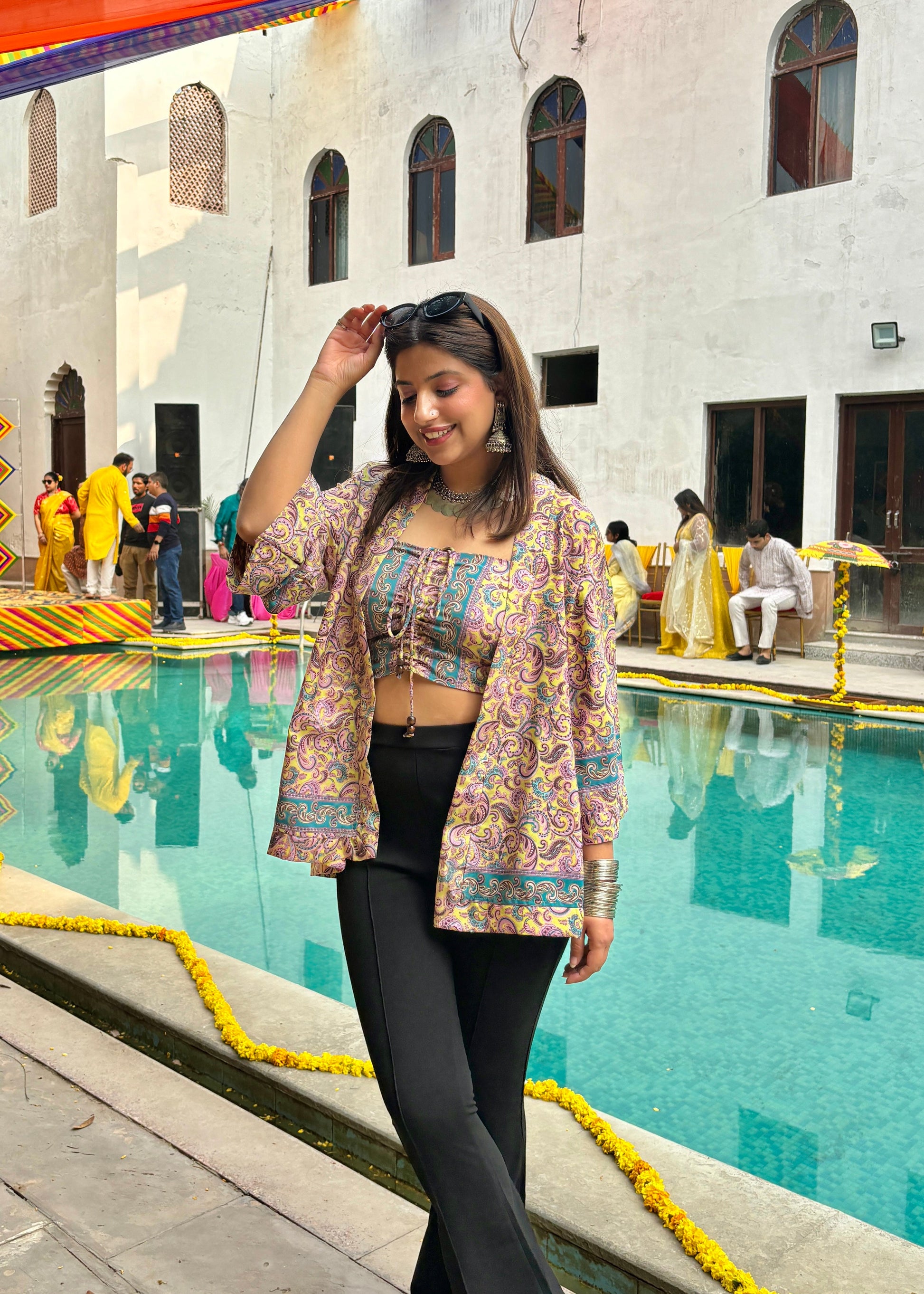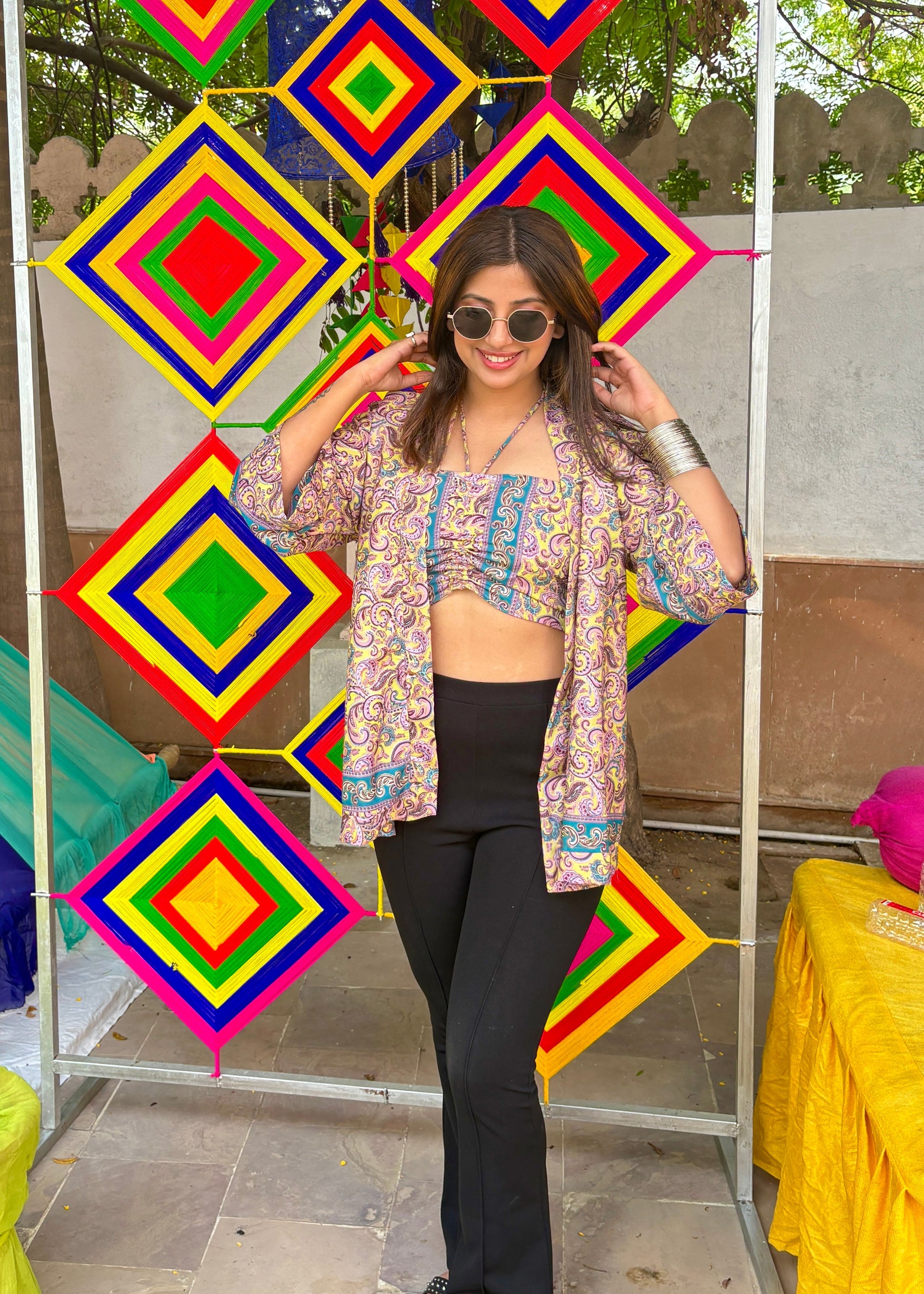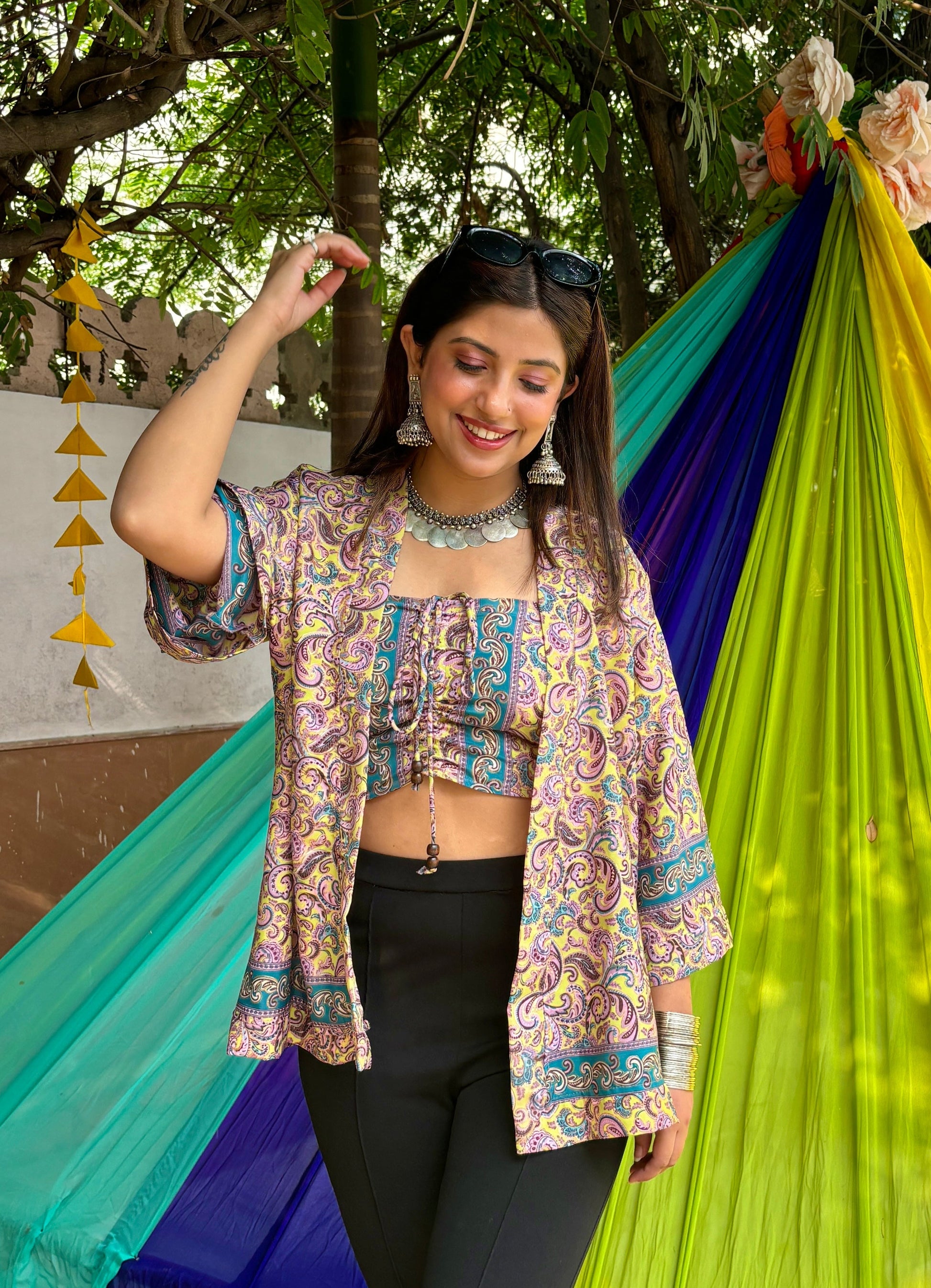 Kimono & Tube Top (2 Piece Set) - Lemon-Turquoise
