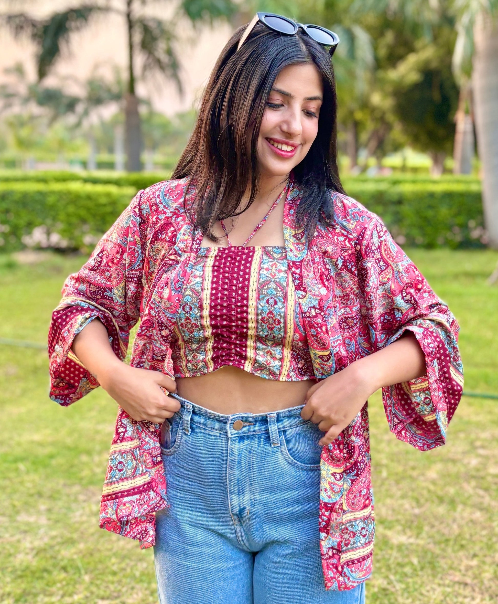 Kimono & Tube Top (2 Piece Set) - Ruby