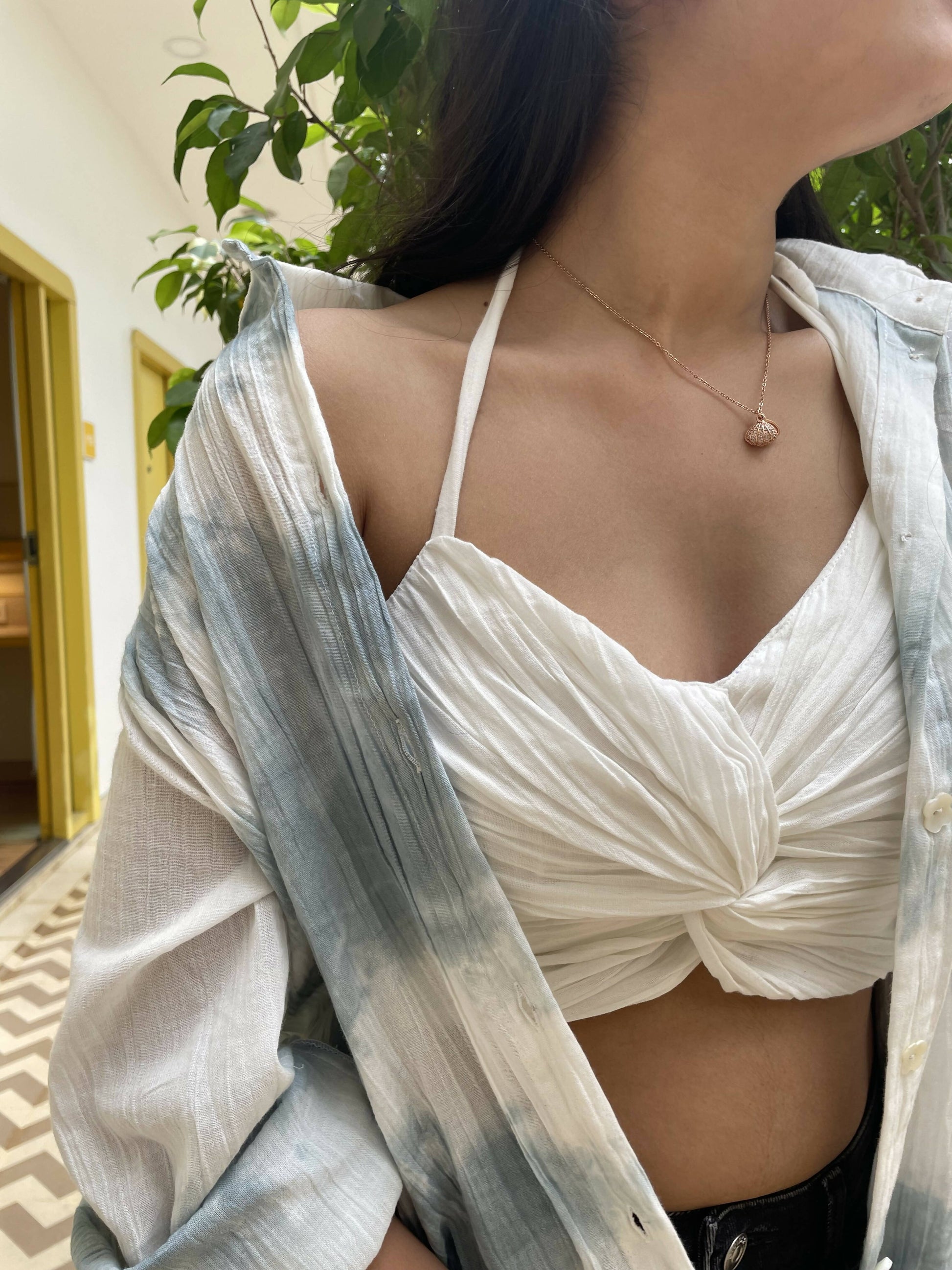 Crinkled Cotton front knotted top with adjustable straps perfect to style with our shirts