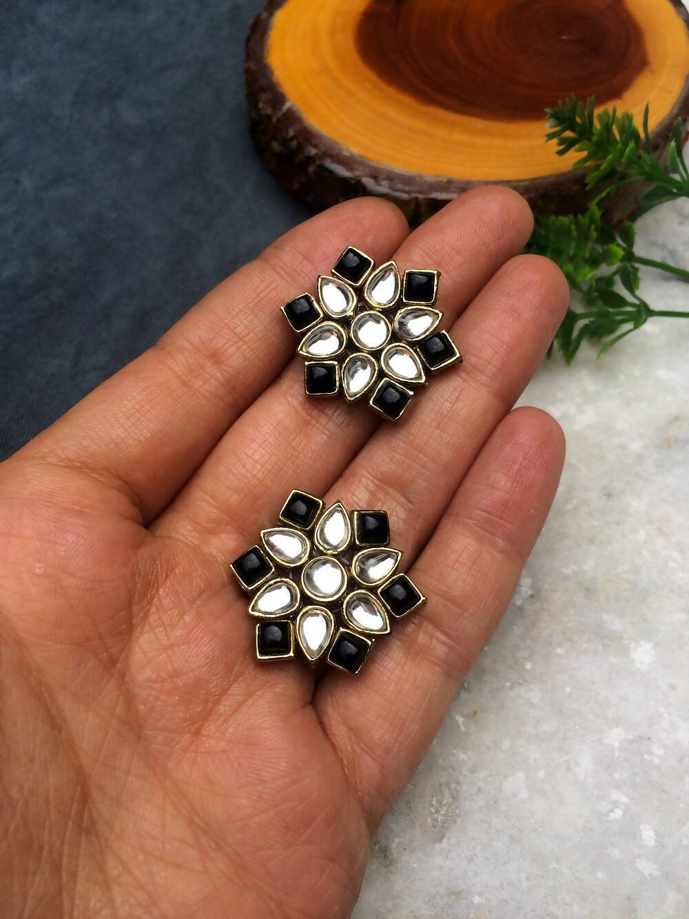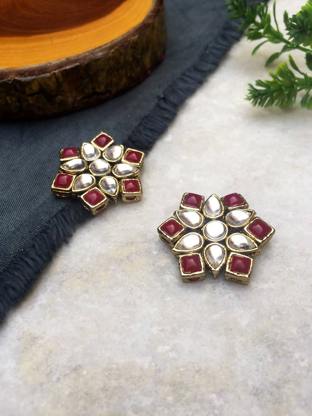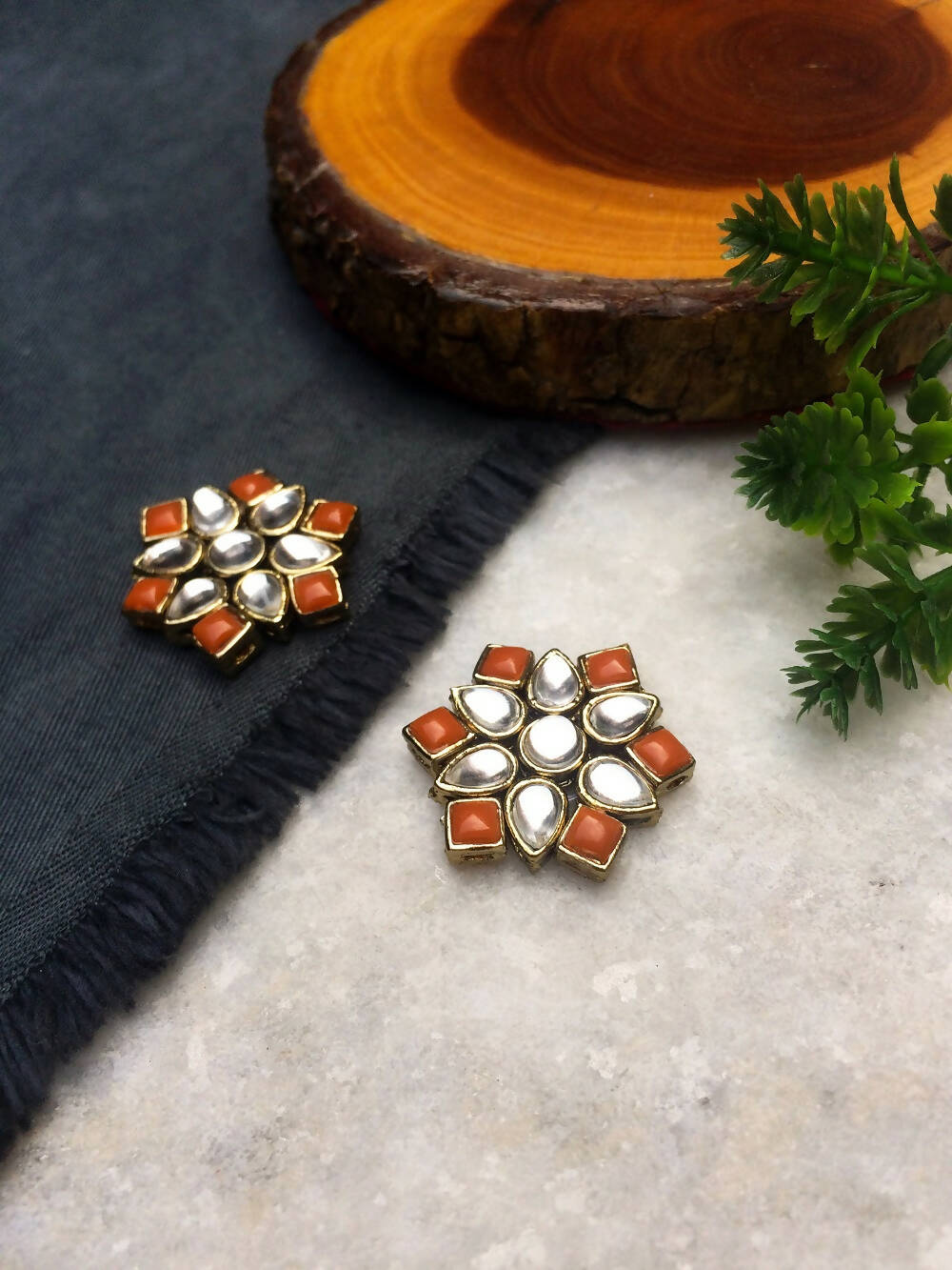 Add a refined touch to any look with our Kundan Mandala Studs! Small kundan and resin stones are set together to shape these stunners.