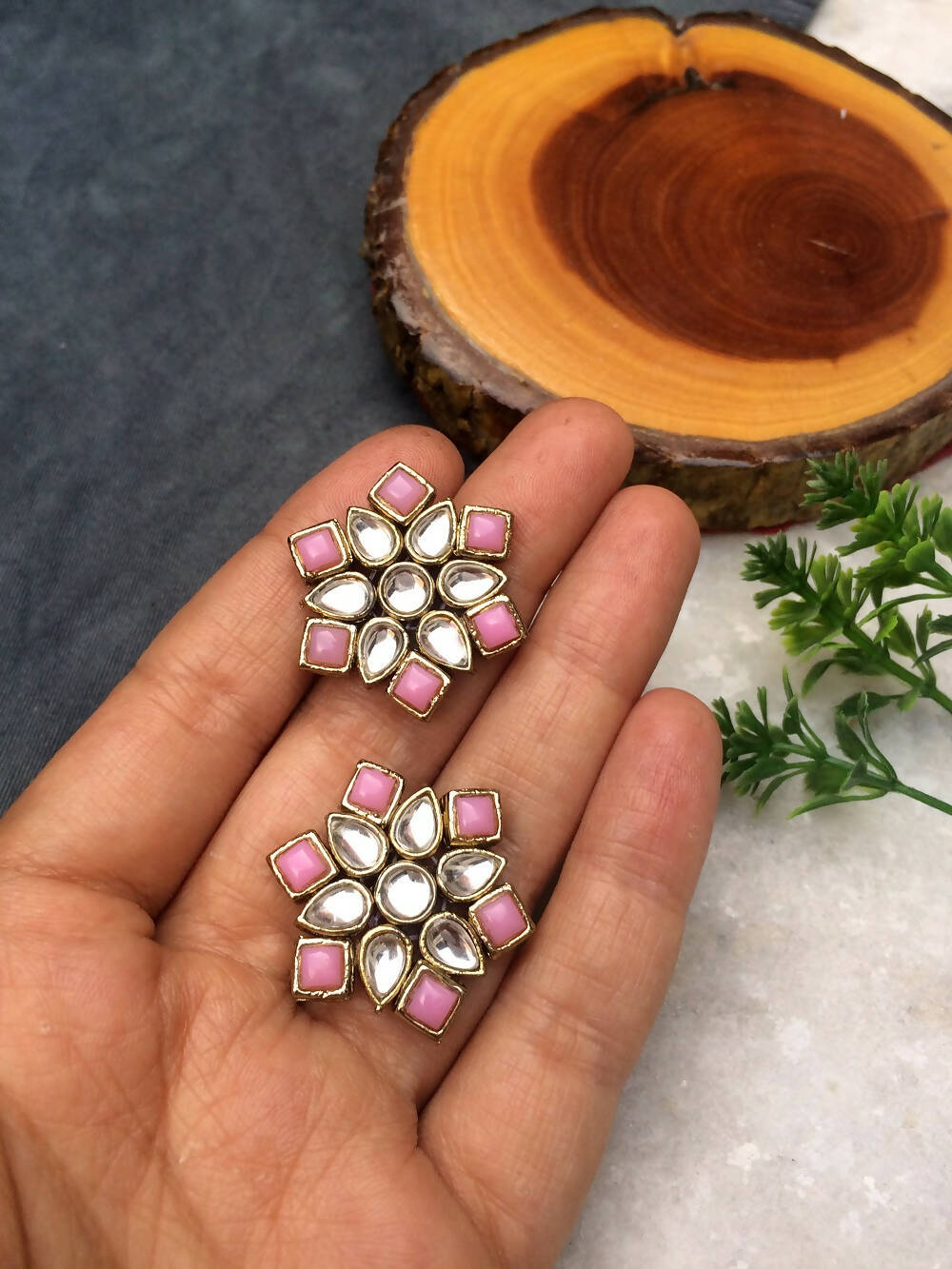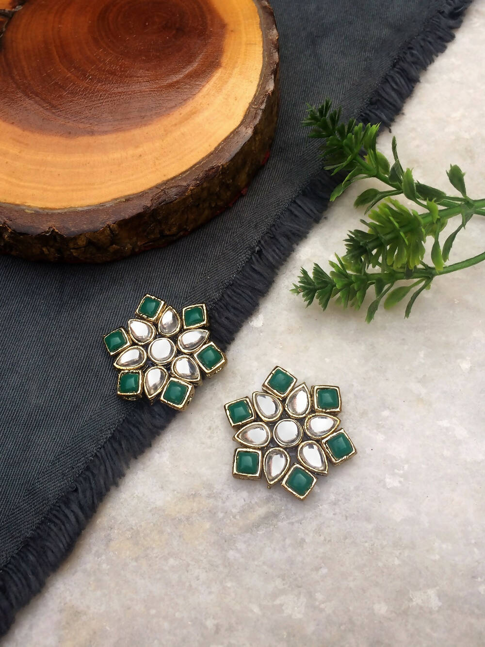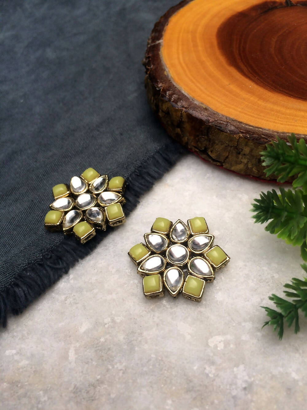 Add a refined touch to any look with our Kundan Mandala Studs! Small kundan and resin stones are set together to shape these stunners.