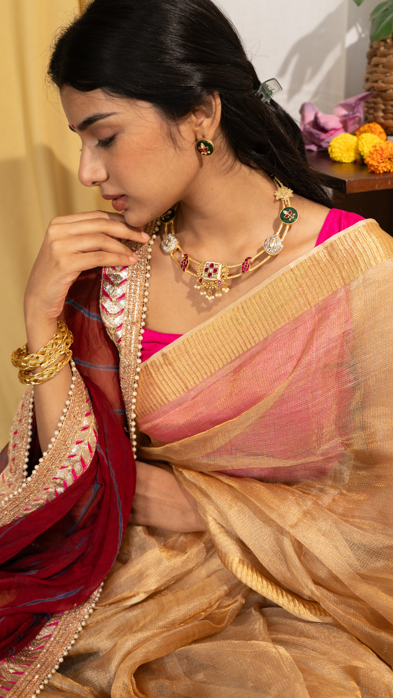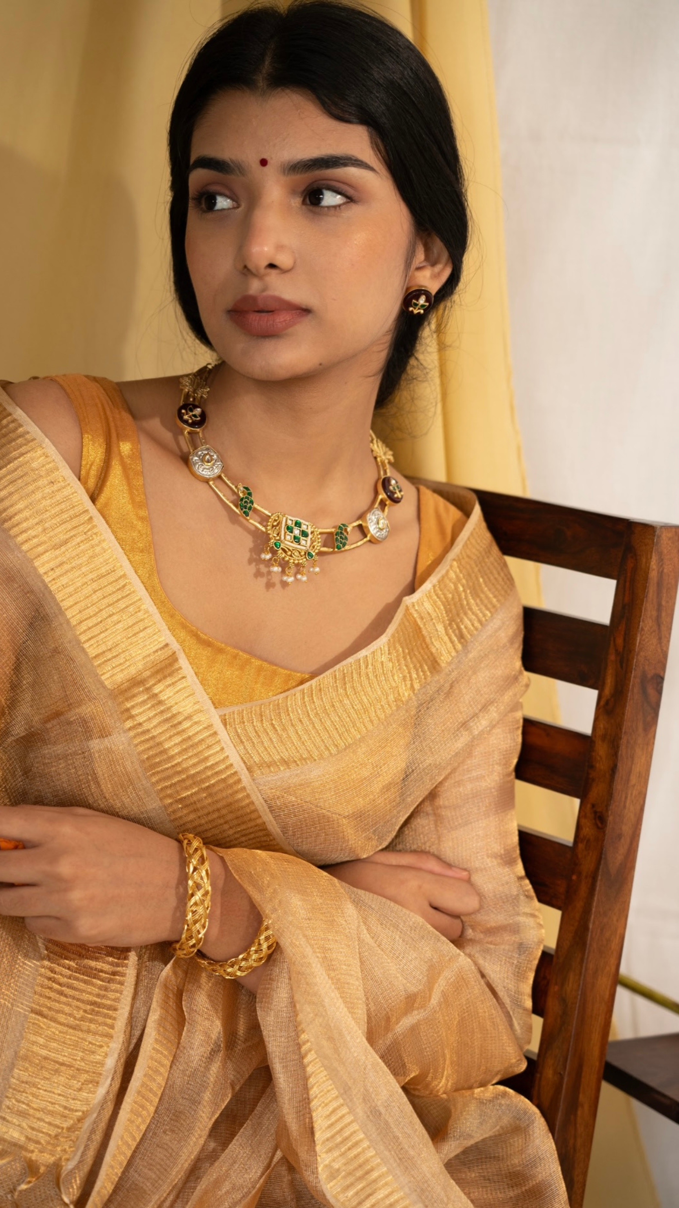 With the festivities around the corner, the Kusha Set is your perfect accessory to shine! Exquisitely crafted, this set effortlessly combines elegance with tradition, making it a versatile piece to enhance any festive outfit. Whether paired with a saree or a chic ethnic ensemble, the Kusha Set adds a touch of glamour and sophistication to your look. Step up your style and make a statement this festive season!