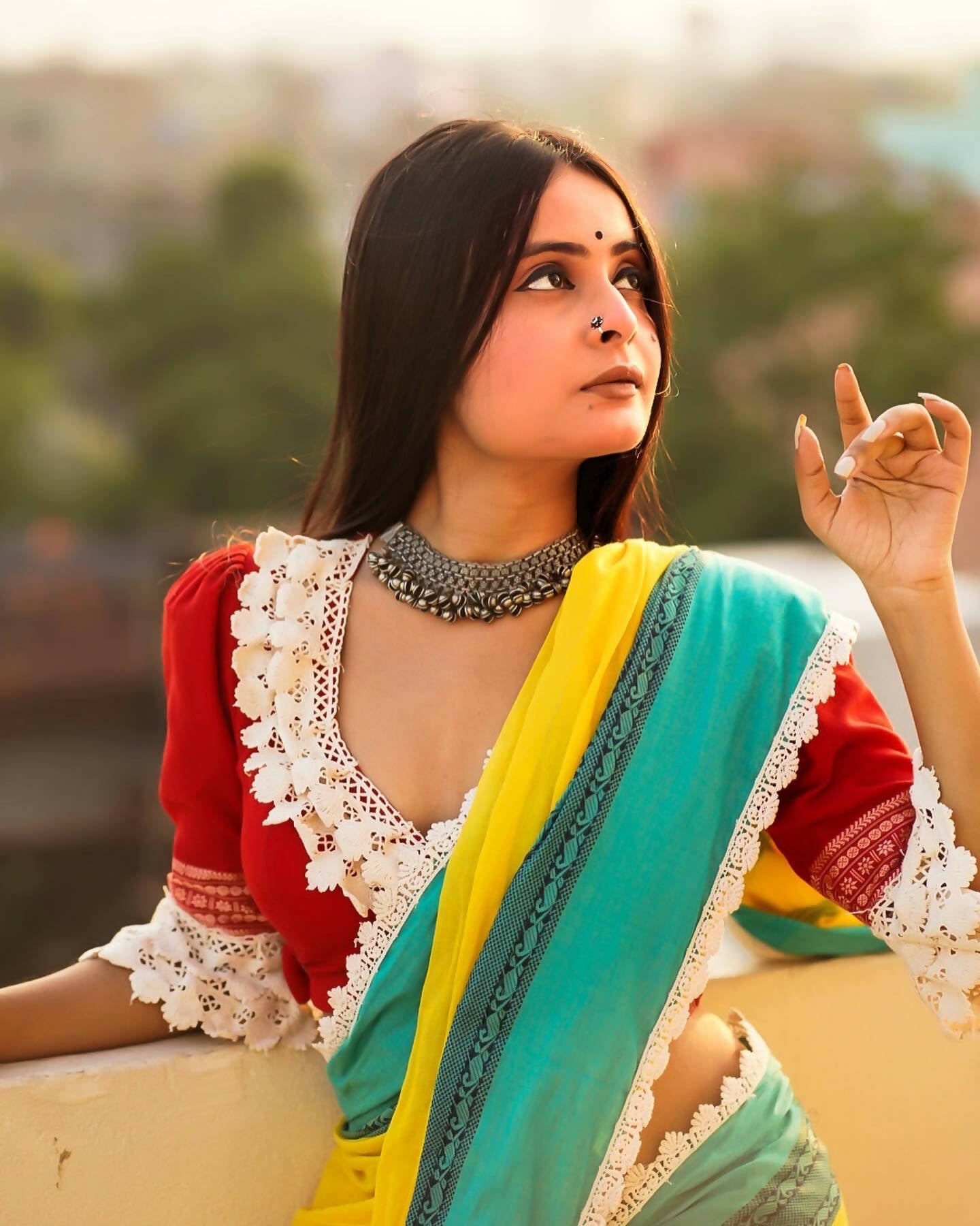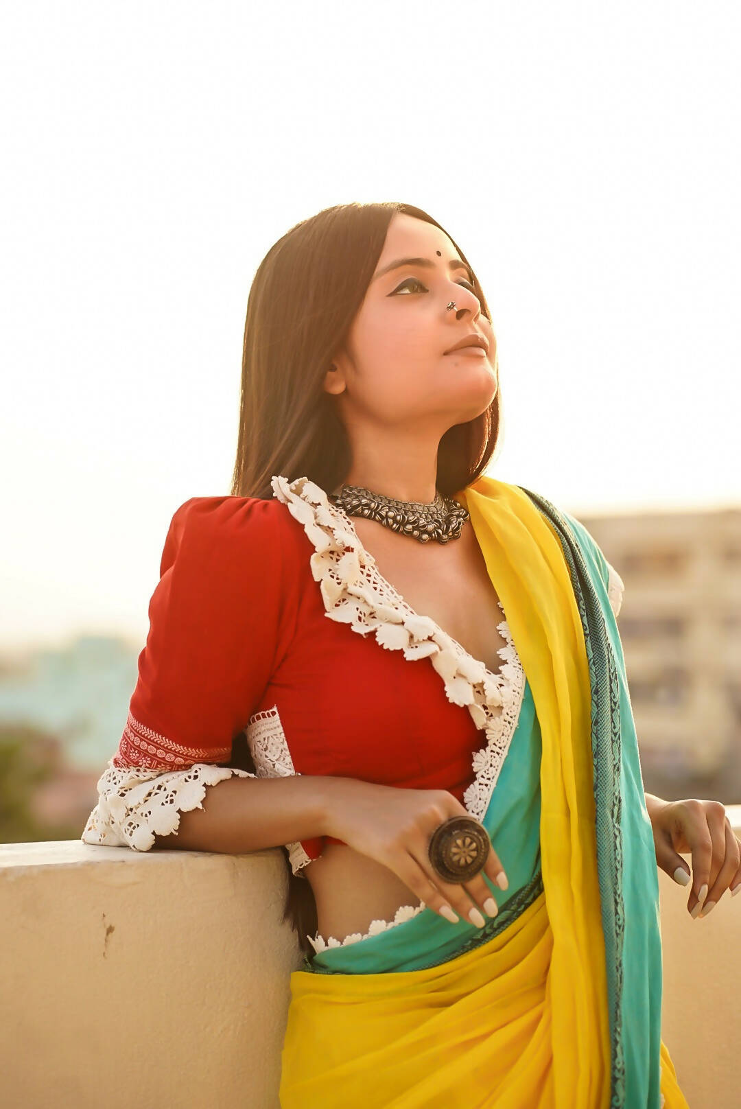 Elegantly designed to complement any saree, this blouse is a timeless fusion of tradition and style. And a perfect piece to add a statement to your attire! Pair it with a monotone saree or go all over by pairing it with a contrast saree. This one will surely will be a statement piece in your wardrobe.