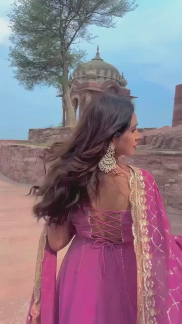 Embrace a vision of ethereal grace with our captivating flared Anarkali kurta and pant set with Dupatta. This ensemble is a celebration of light and texture, designed to make you feel like a radiant vision on any special occasion. This luxurious fabric drapes like a dream around your form, creating a silhouette that flows with every movement. The flared silhouette adds a touch of drama and elegance, making you feel like a captivating dancer with every step.
