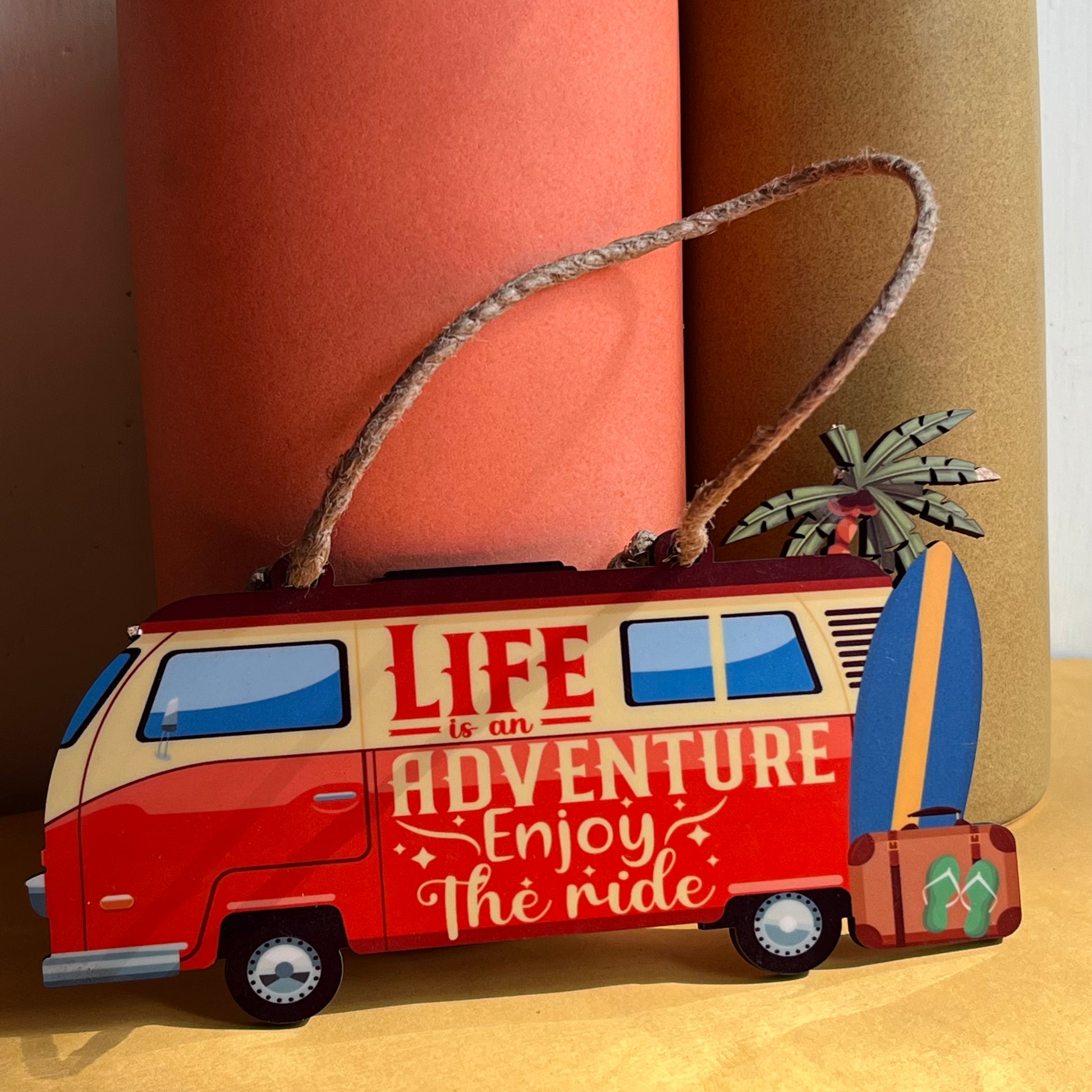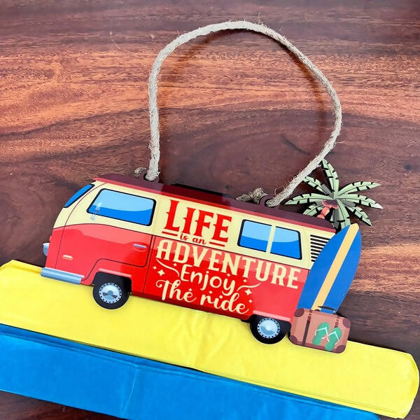 Specially designed for wayfarers and wandering souls. Are you always shifting rented apartments? Or would like your walls back home to reflect your personality while you're away vacationing? Our caravan-shaped wall hanging quotes "Life is an Adventure, Enjoy the Ride" printed in bold lettering on top of an acrylic-lined wooden base, and is the perfect decoration piece for those who are never at home!