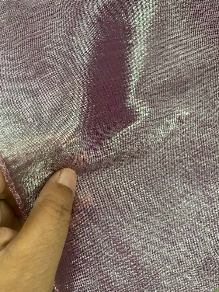 Materials: Tissue fabric is created by interweaving two yarns in the warp and weft. It utilizes a combination of base silk zari in the warp and cotton in the weft to achieve a smoother texture.