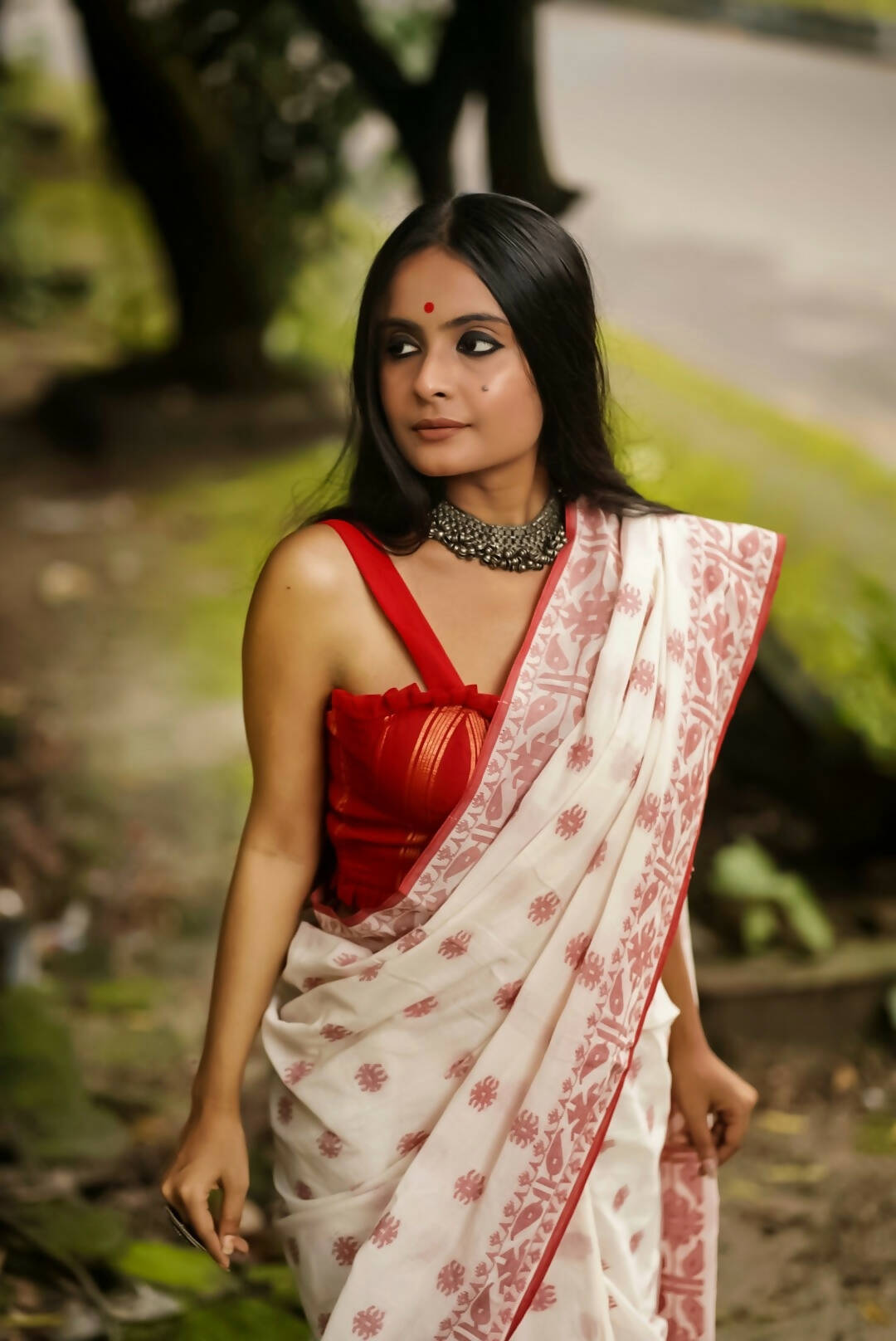 Elegantly designed to complement any saree, this blouse is a timeless fusion of tradition and style.