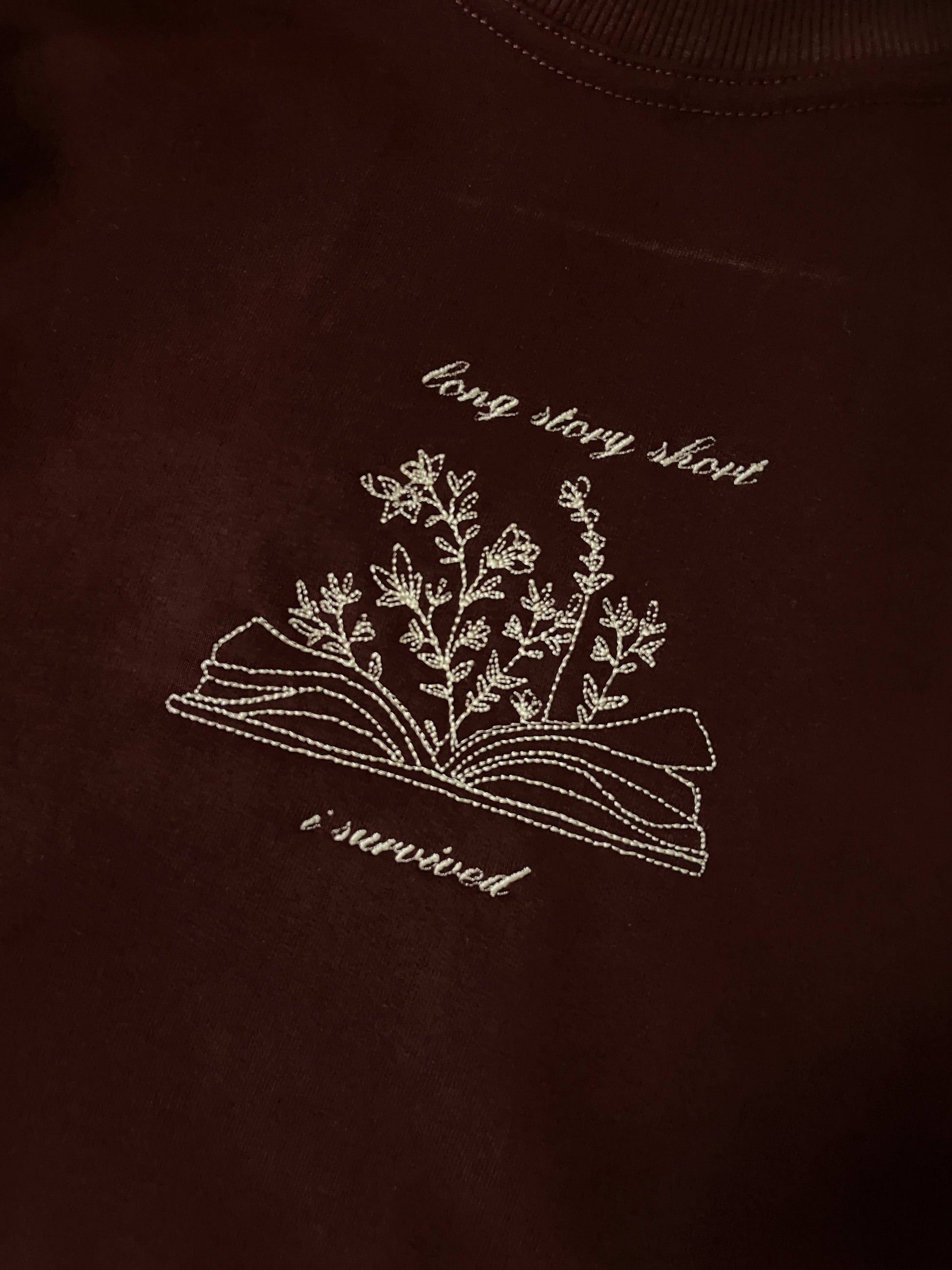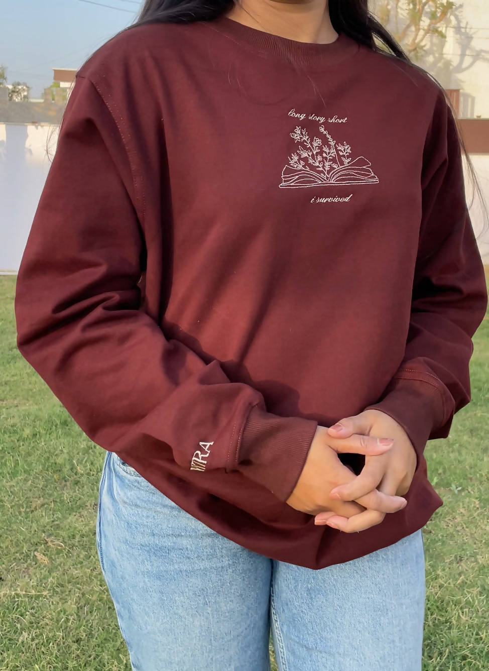 Long Story Short Embroidered Dark Brown Sweatshirt
