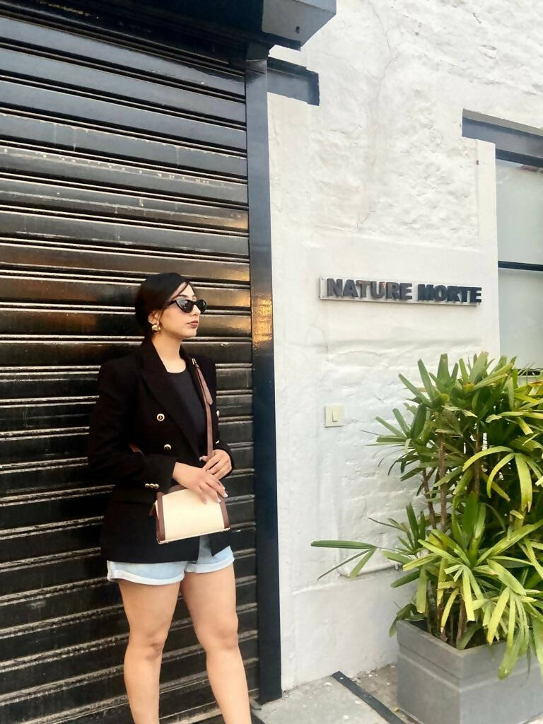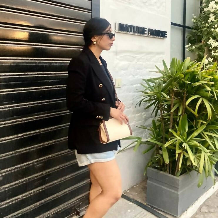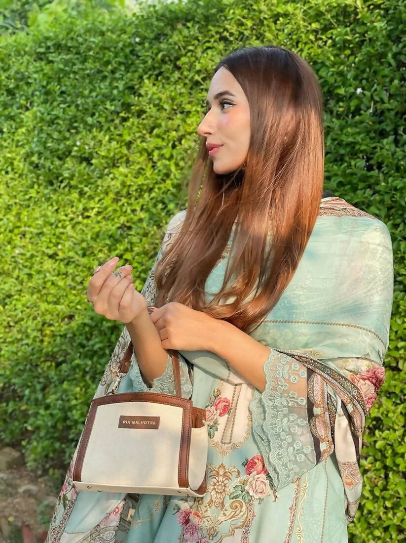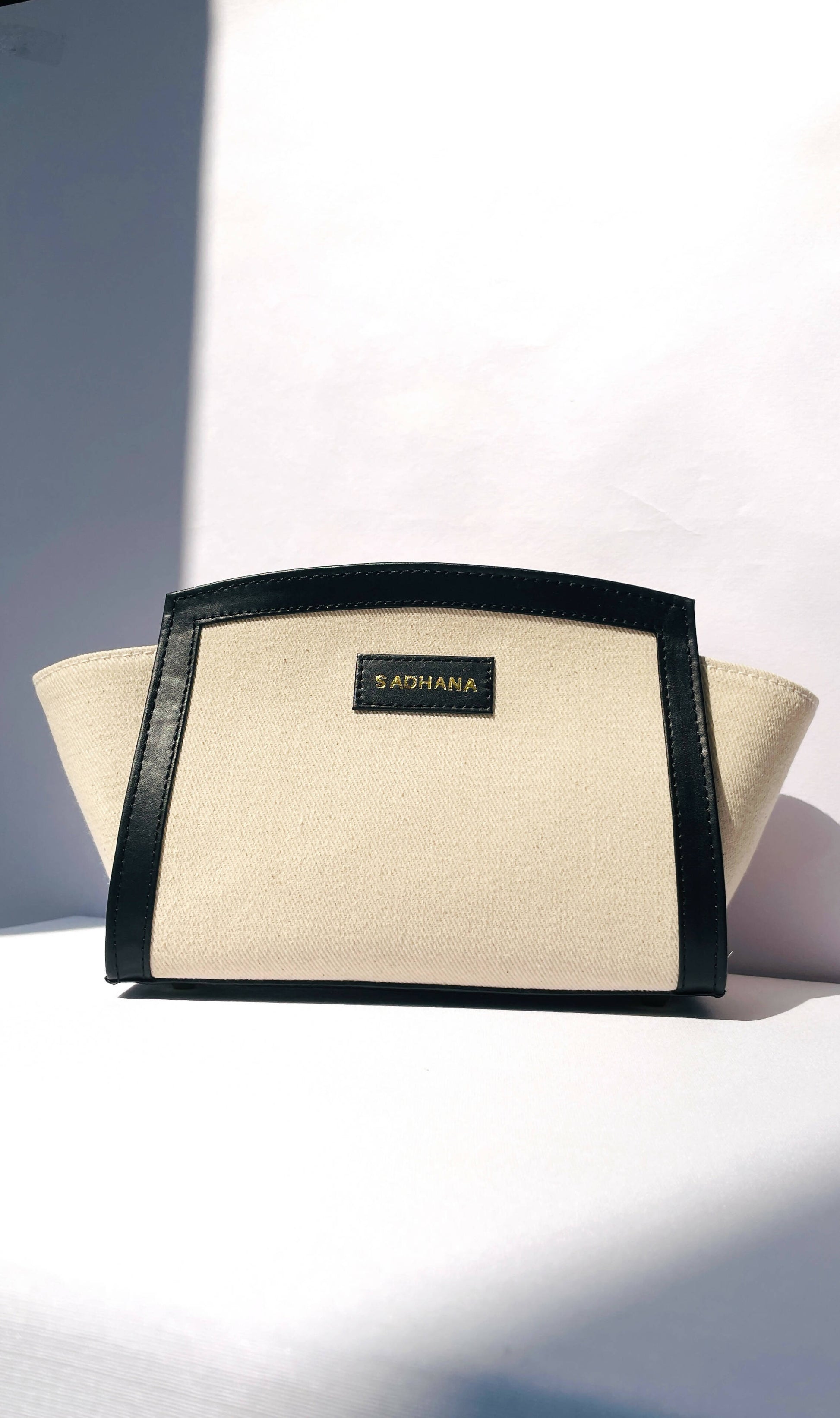 It's a sling bag made of faux leather and canvas combination. Suitable for all everyday essentials.