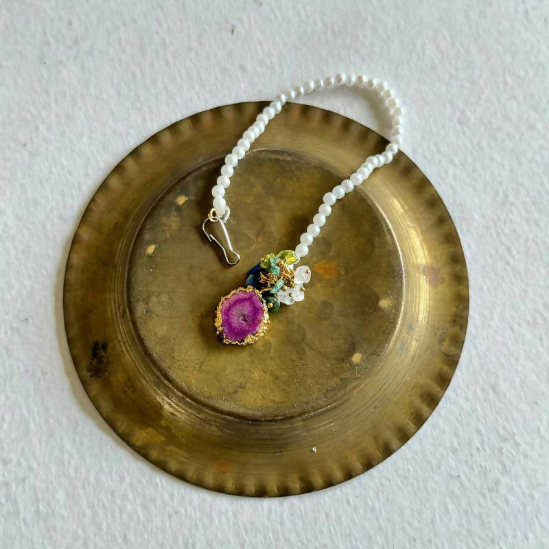 Enhance your bridal look with our exquisite Maang Tikka. Handmade with semi precious stones and pearls, this accessory adds a touch of sophisticated elegance to your ensemble. Don't overlook the little things - they can make a big statement on your special day.