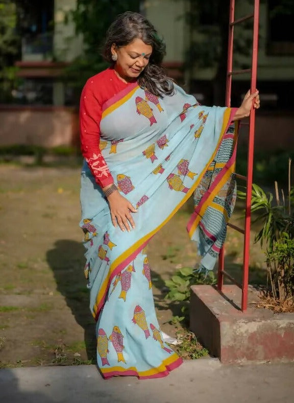Machhli Rani Blue Cotton Saree
