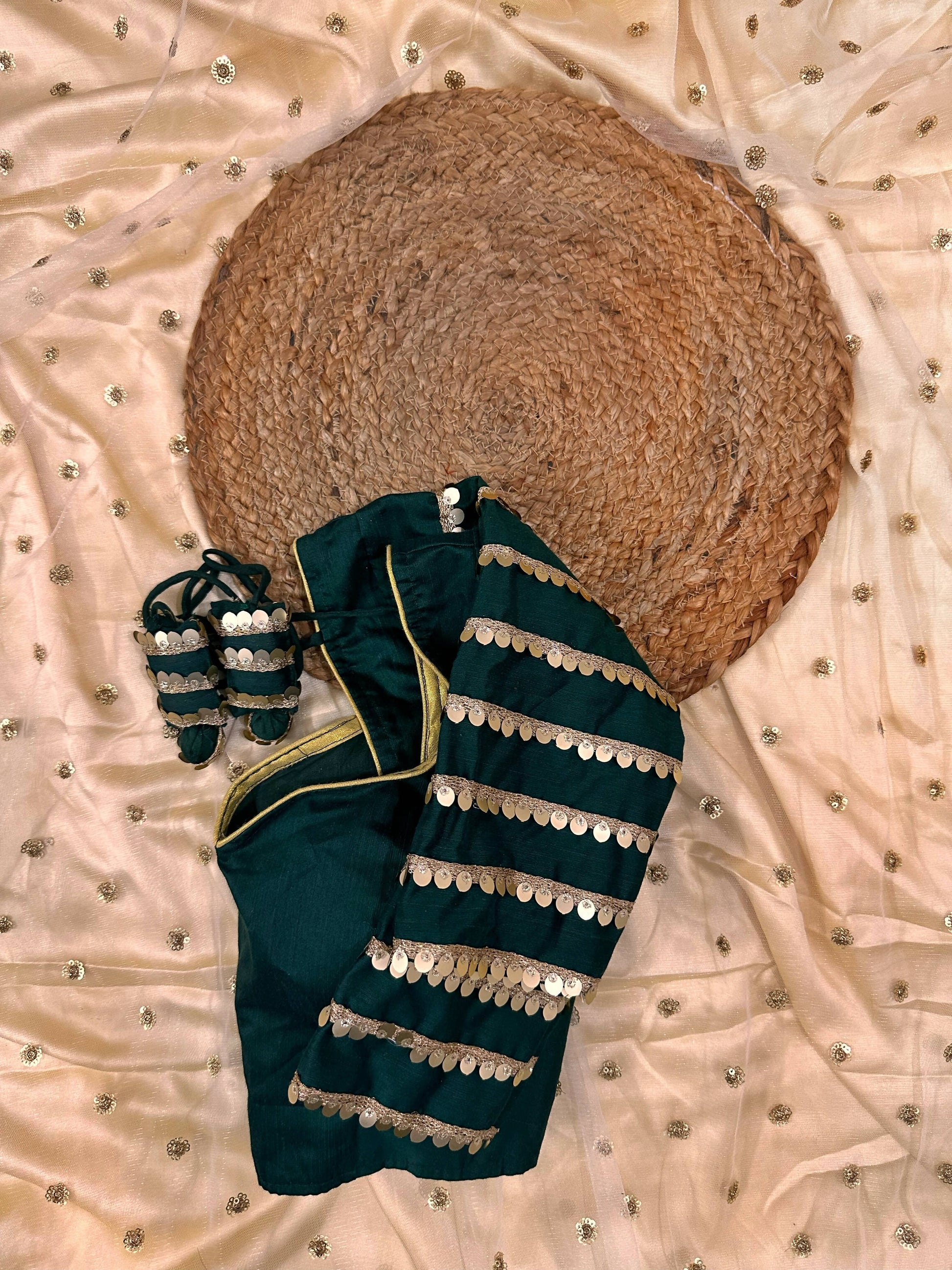 Elegantly designed to complement any saree, this blouse is a timeless fusion of tradition and style. And a perfect piece to add a statement to your attire! Pair it with a monotone saree or go all over by pairing it with a contrast saree. This one will surely will be a statement piece in your wardrobe.