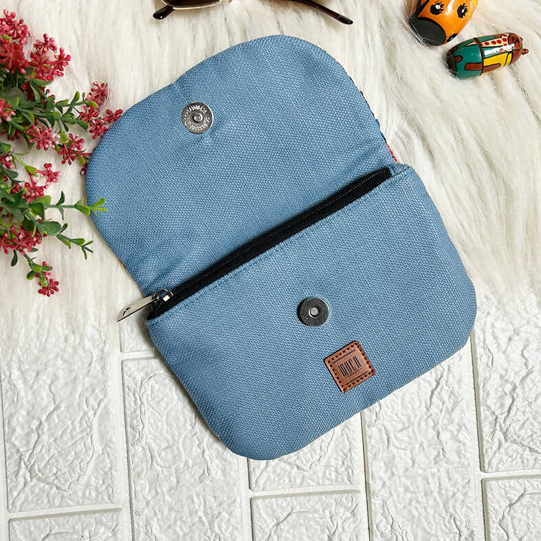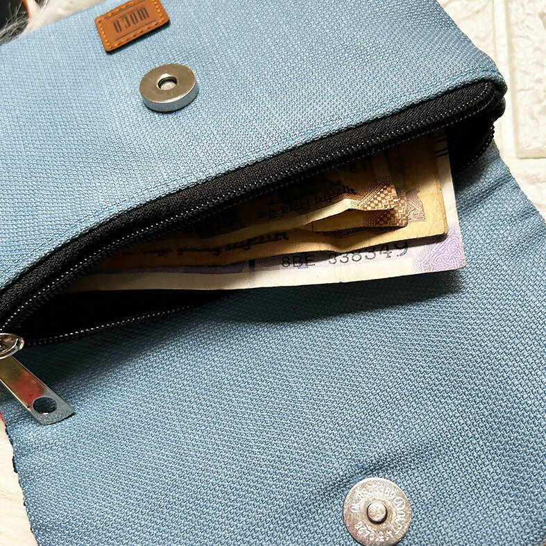 A functional wallet designed to ease your day-to-day life. It is a sleek yet spacious wallet, handcrafted with a hand embroidered magnetic closure flap. It has sturdy and durable accessories with zipper closure. The inner main section contains slots for cards, and 3 slip pockets for keeping bills. A zipper compartment can fit your mobile phone. There is a separate ID card window for your documents like IDs and other cards safe. It has a zipper closure at the back. It also has a detachable wristlet for convenient carry.