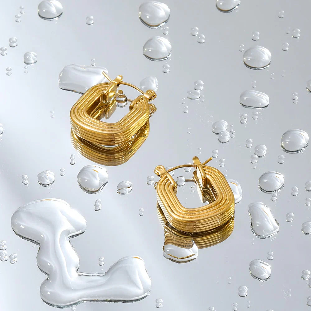 The Malia Layered Hoops are crafted from stainless steel and 18K gold, offering style, a lightweight feel, and durability. The 18k gold plating ensures beauty and long-lasting wear that is also safe for those with sensitive skin. Waterproof and rust-resistant, these hoops are perfect for everyday wear.