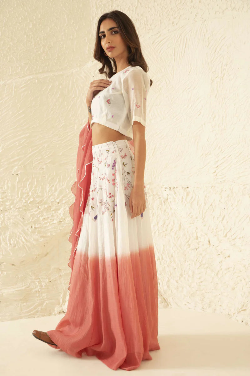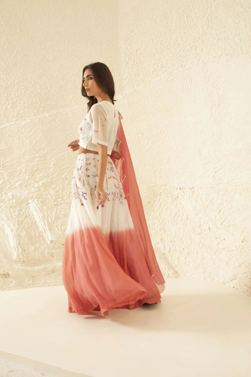 Manorama - Ombre Dye Floral Embroidered Lehenga Set
