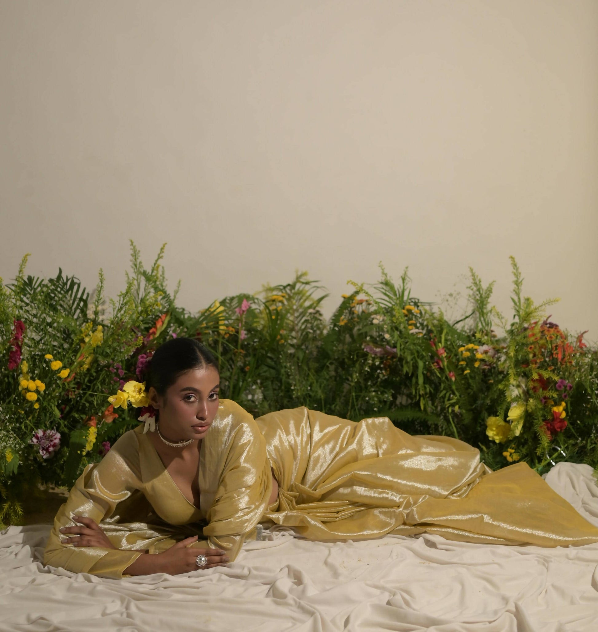 Neon yellow solid handloom tissue saree, style it with heavy jewellery for statement look or go minimal as the saree itself will make you stand out!