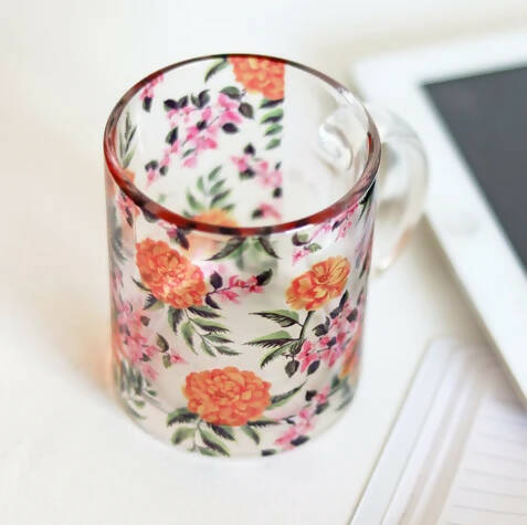 The refreshing fragrance and beauty of the marigold flower depicted in a lovely floral illustration, the Marigold Glass Mug is one of our top-sellers. This unique coffee mug can make a wonderful gift for your loved ones or a beautiful addition to your own collection.